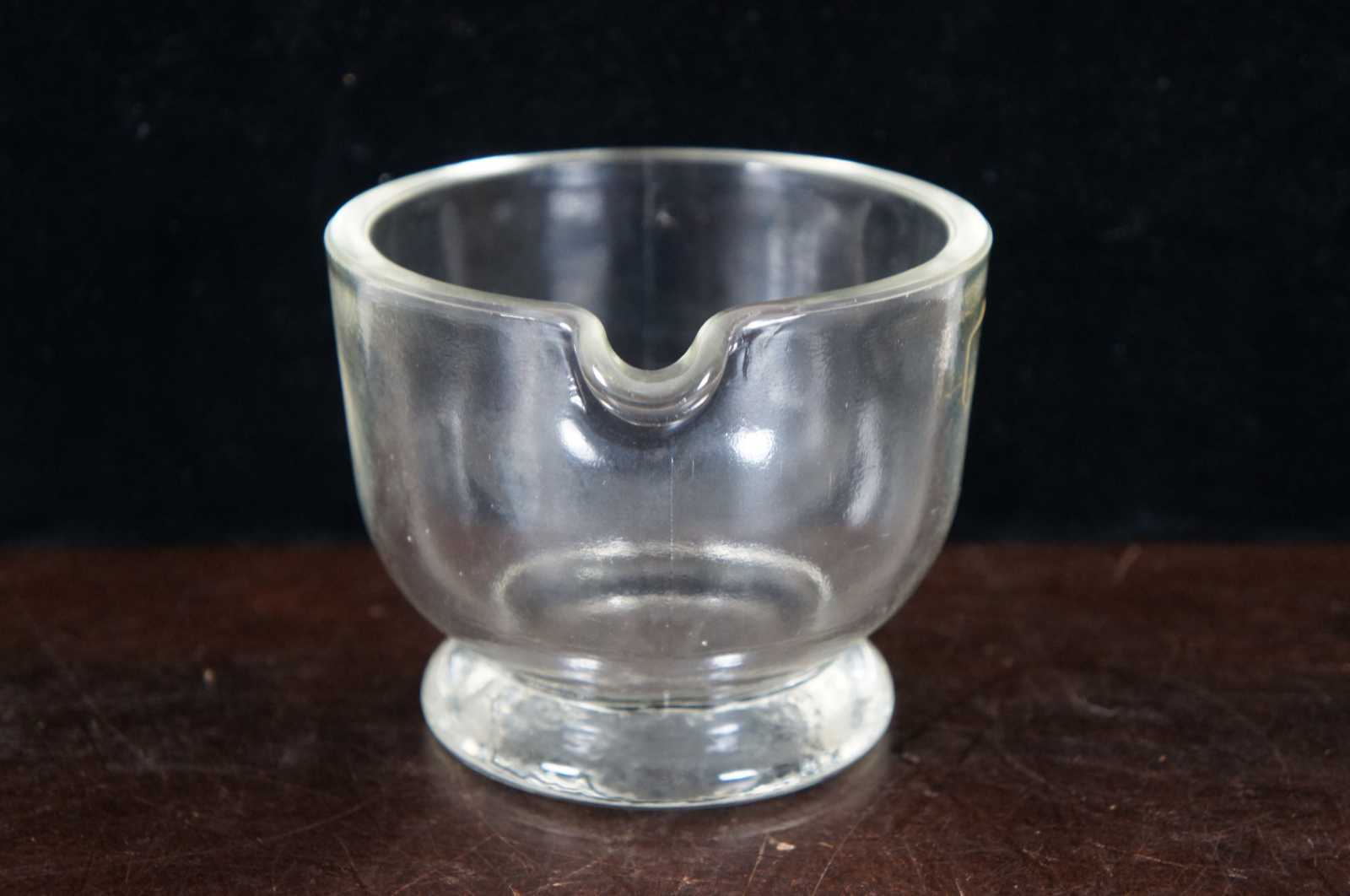 Vintage glass mortar and pestle, herb or medicine grinder with spout made by Pasabahce of Turkey.