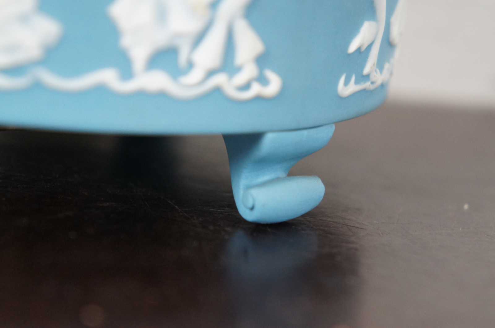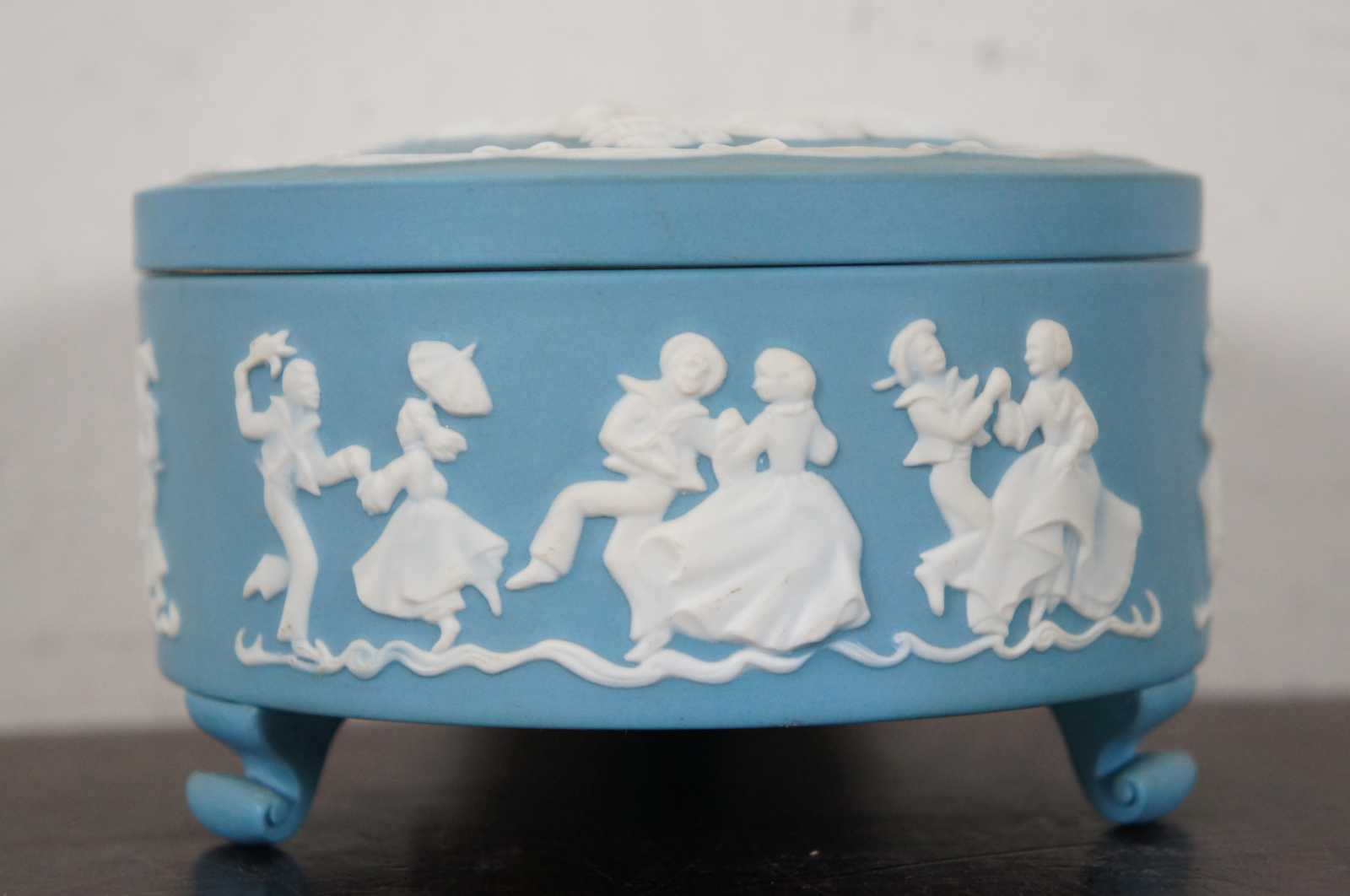 Vintage 1978 Franklin Porcelain and D’Oyly Carte Opera Company lidded and footed music box in the Wedgwood style, commemorating the centennial anniversary of Gilbert and Sullivan’s H.M.S. Pinafore.