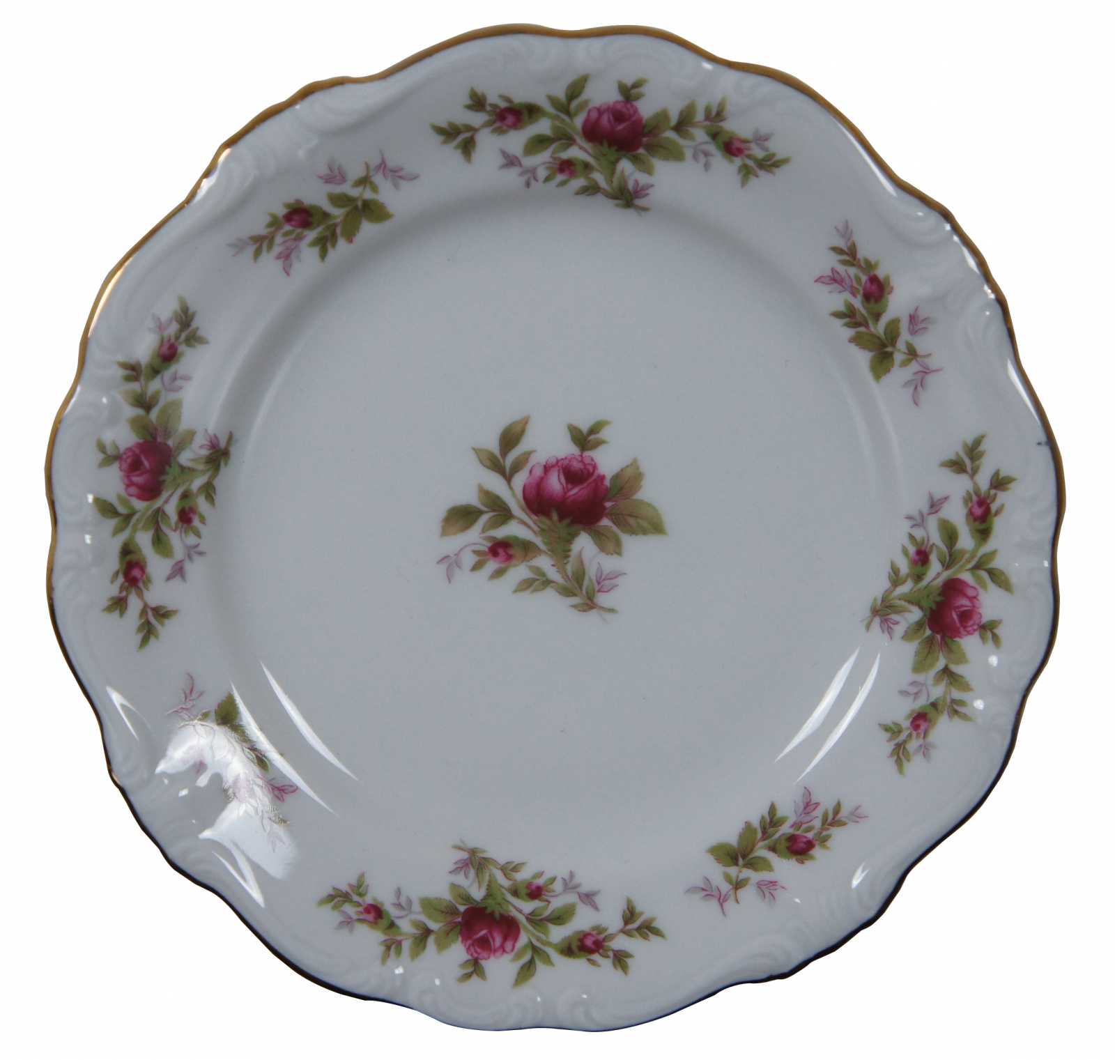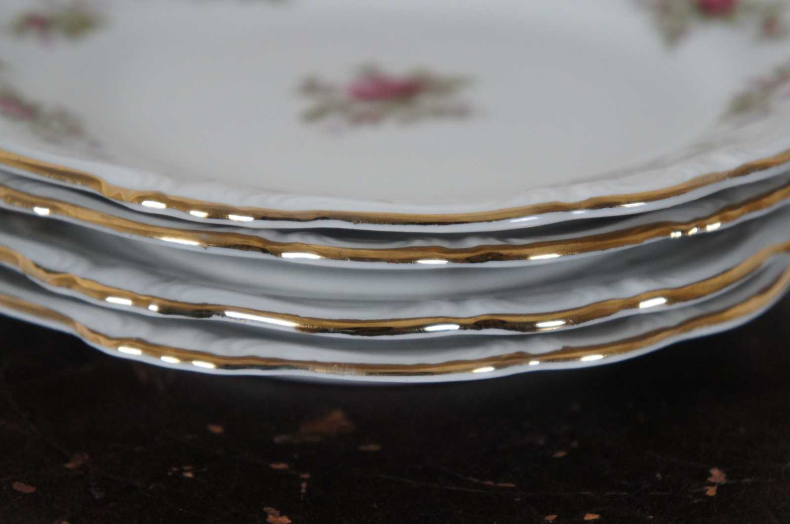 Set of 4 Johann Haviland Moss Rose porcelain dessert plates.