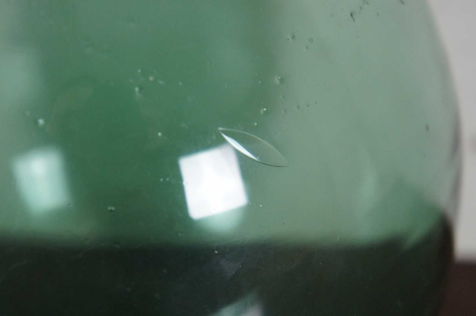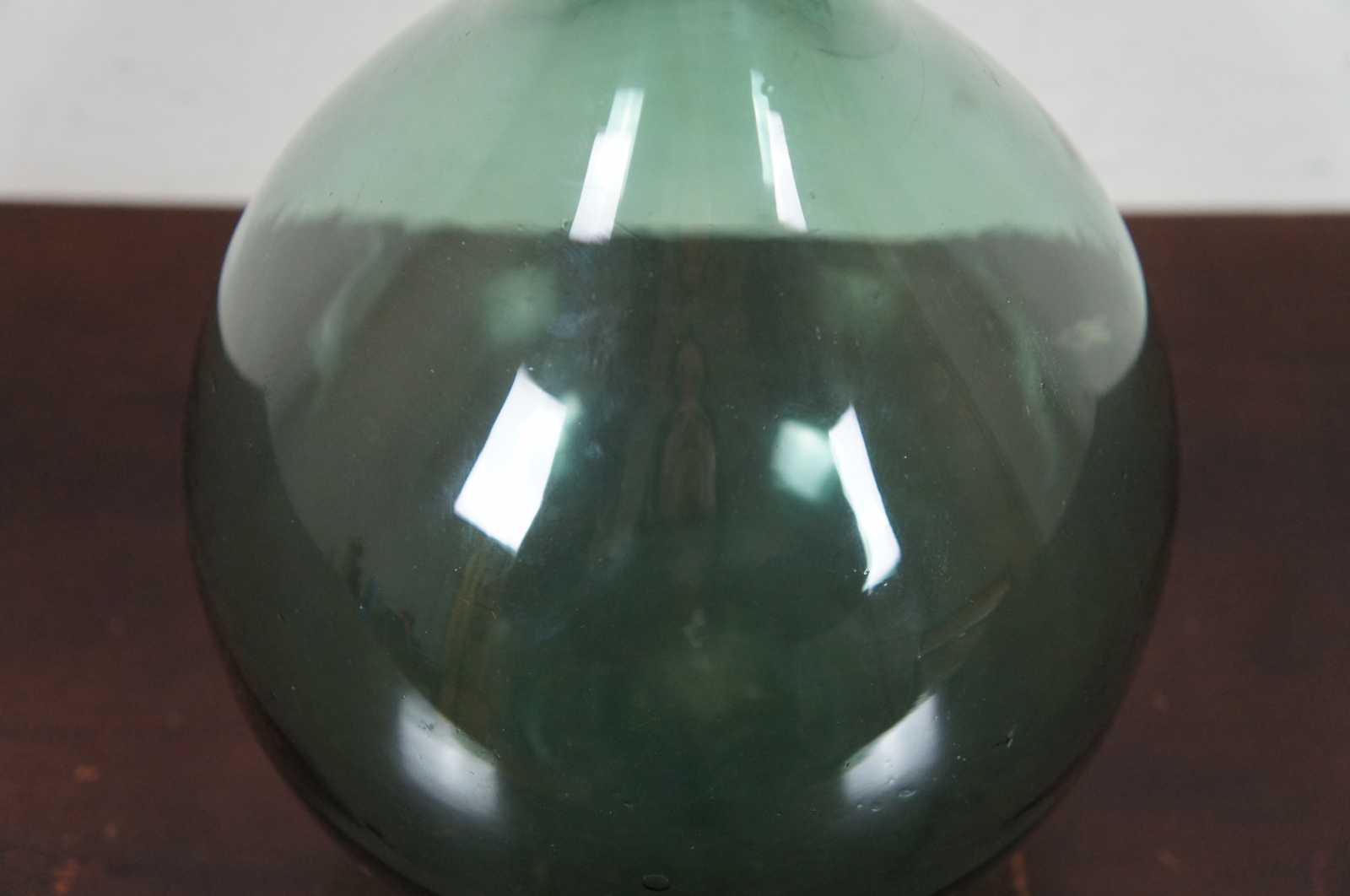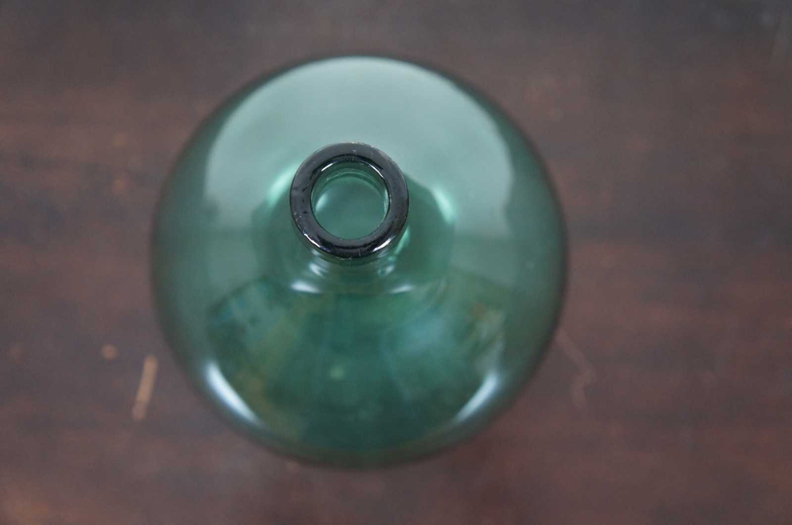Antique handblown French demijohn or bonbonne. Beautifully shaped and brightly colored green glass bottle with polished pontil bottom. Originally used for storing wine and spirits, demijohns were in wide use from the 1700s to the early 1900s.