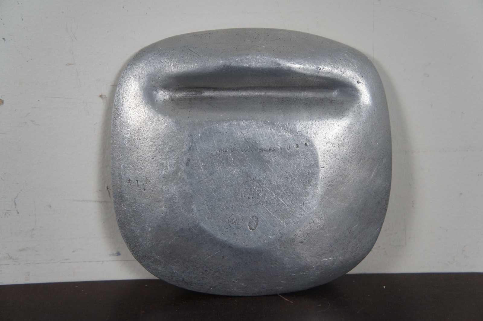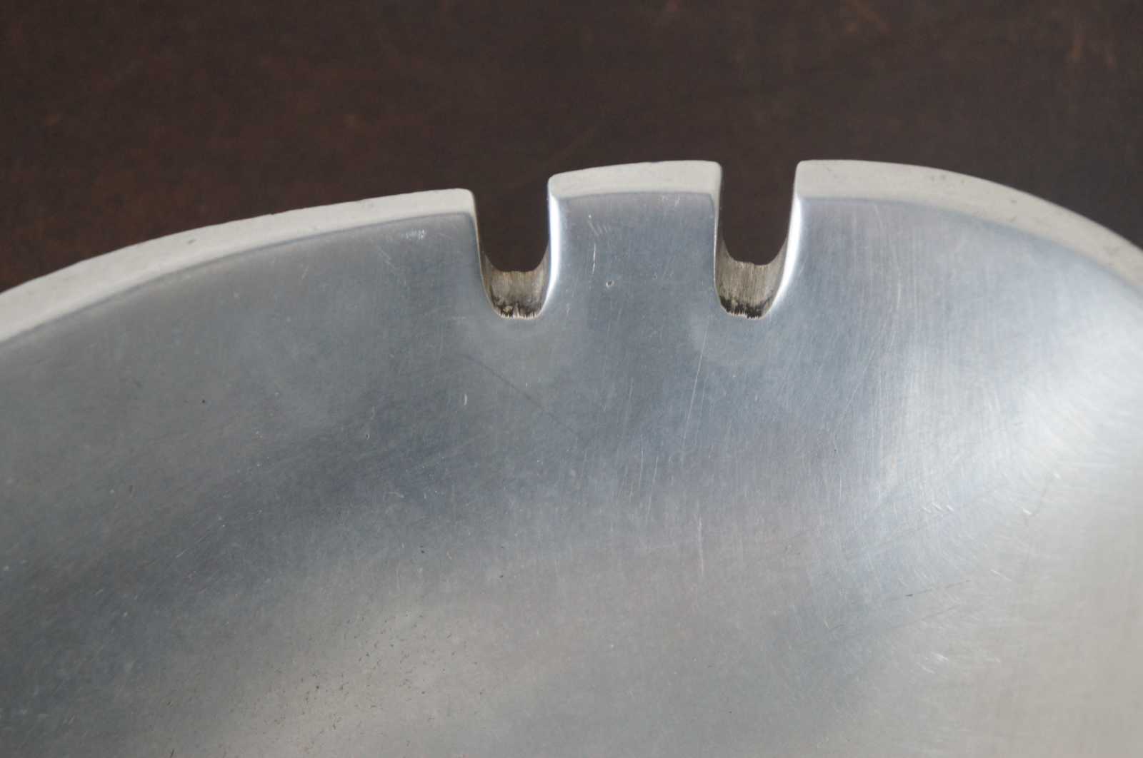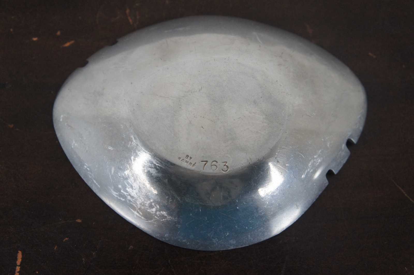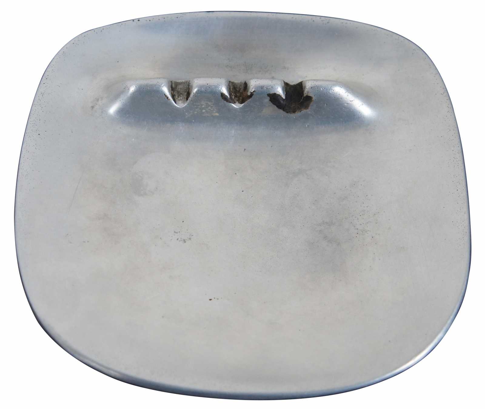 Abstract mid century modern ashtray by Nambe with four cigarette rests and rounded square three rest ashtray by RWP Wilton Pewter.
