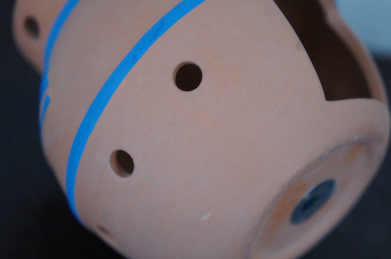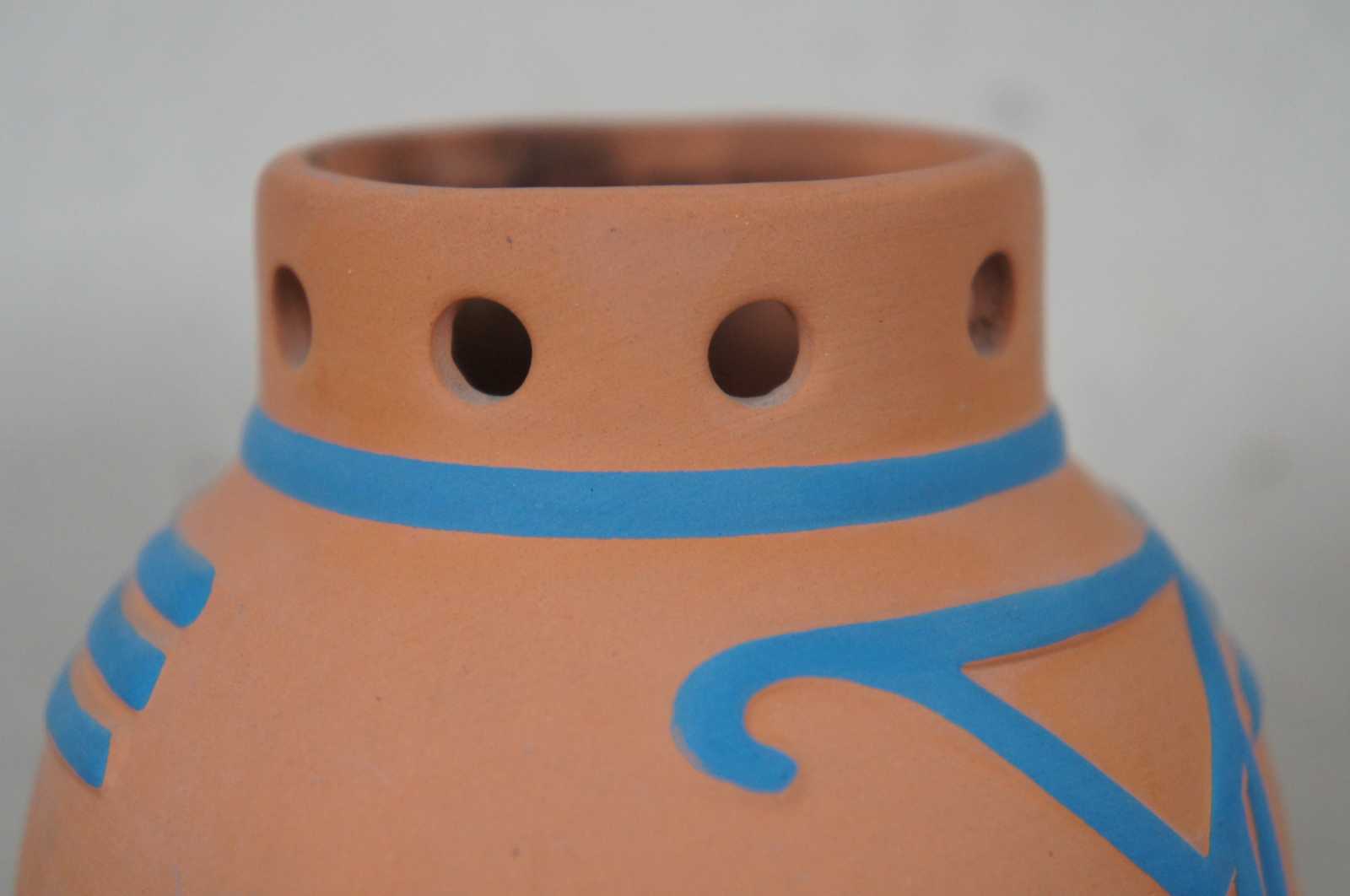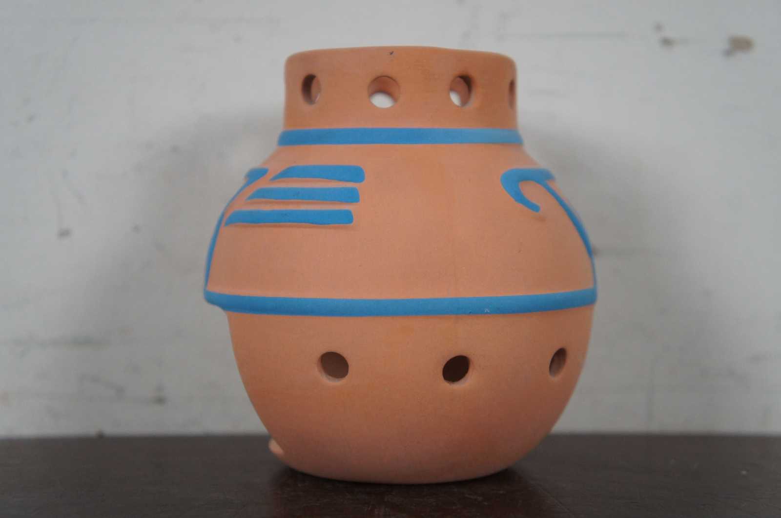 Southwest style terra cotta with painted turquoise design, Partylite brand votice or tea light candle holder.