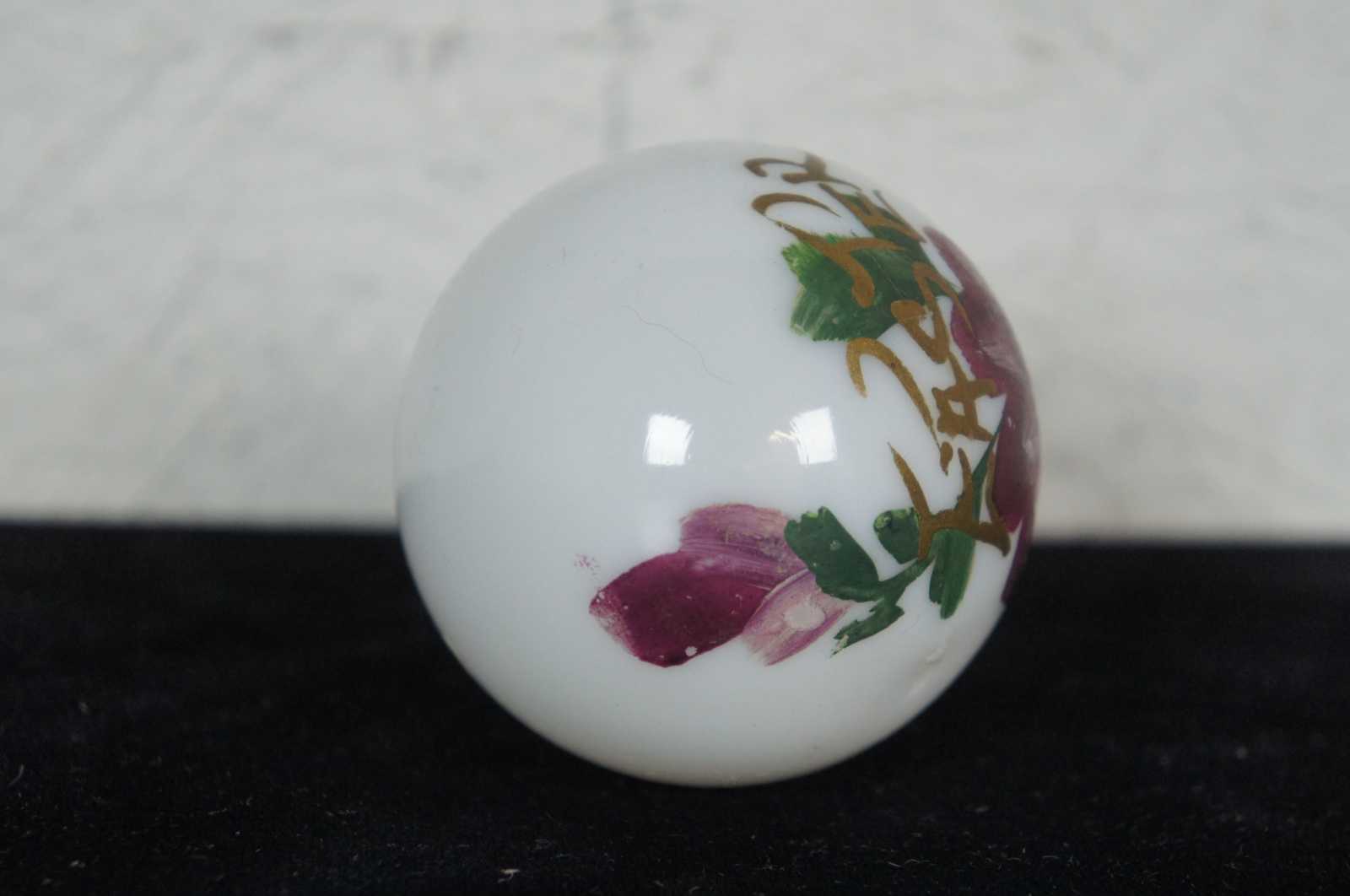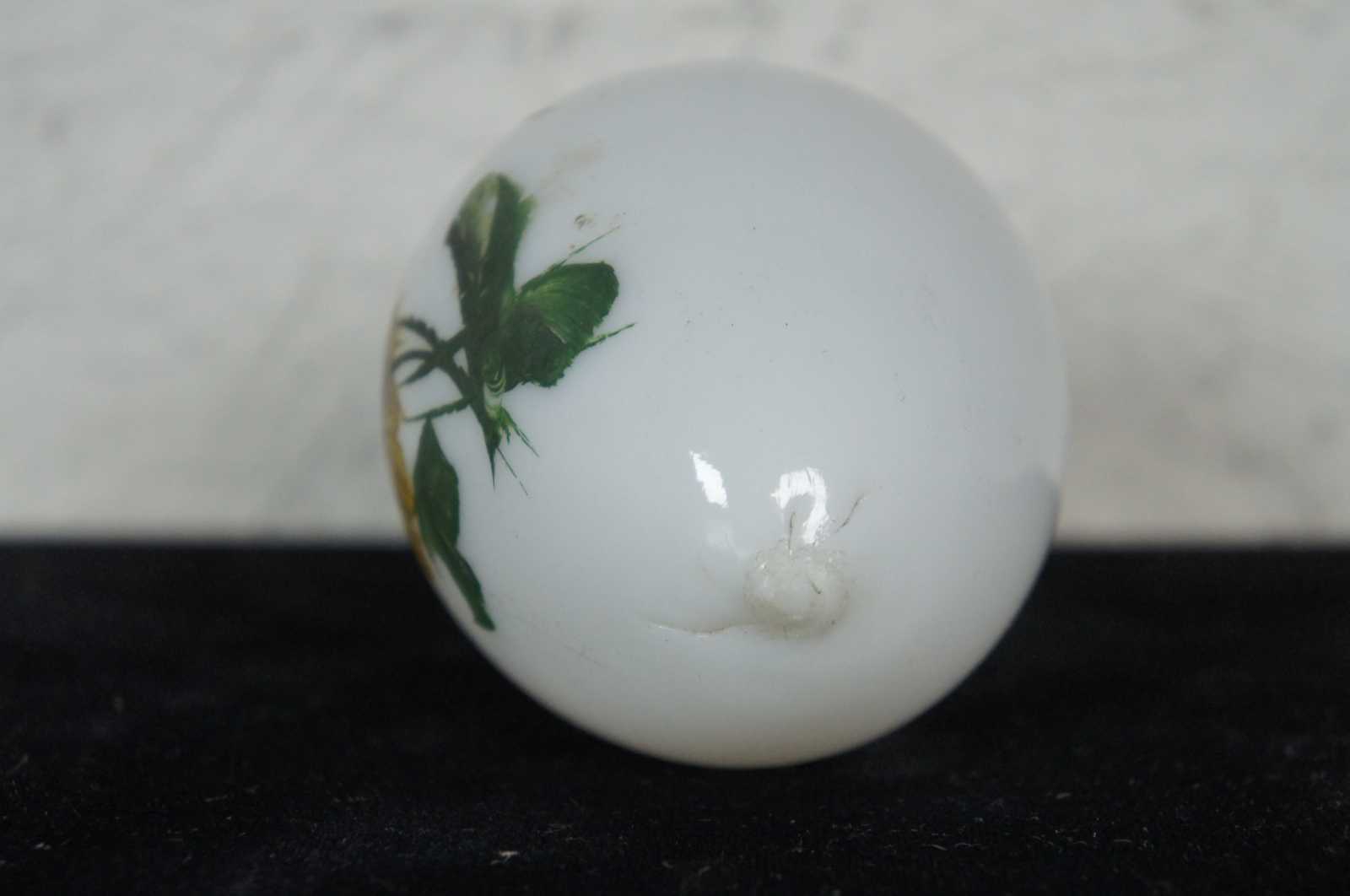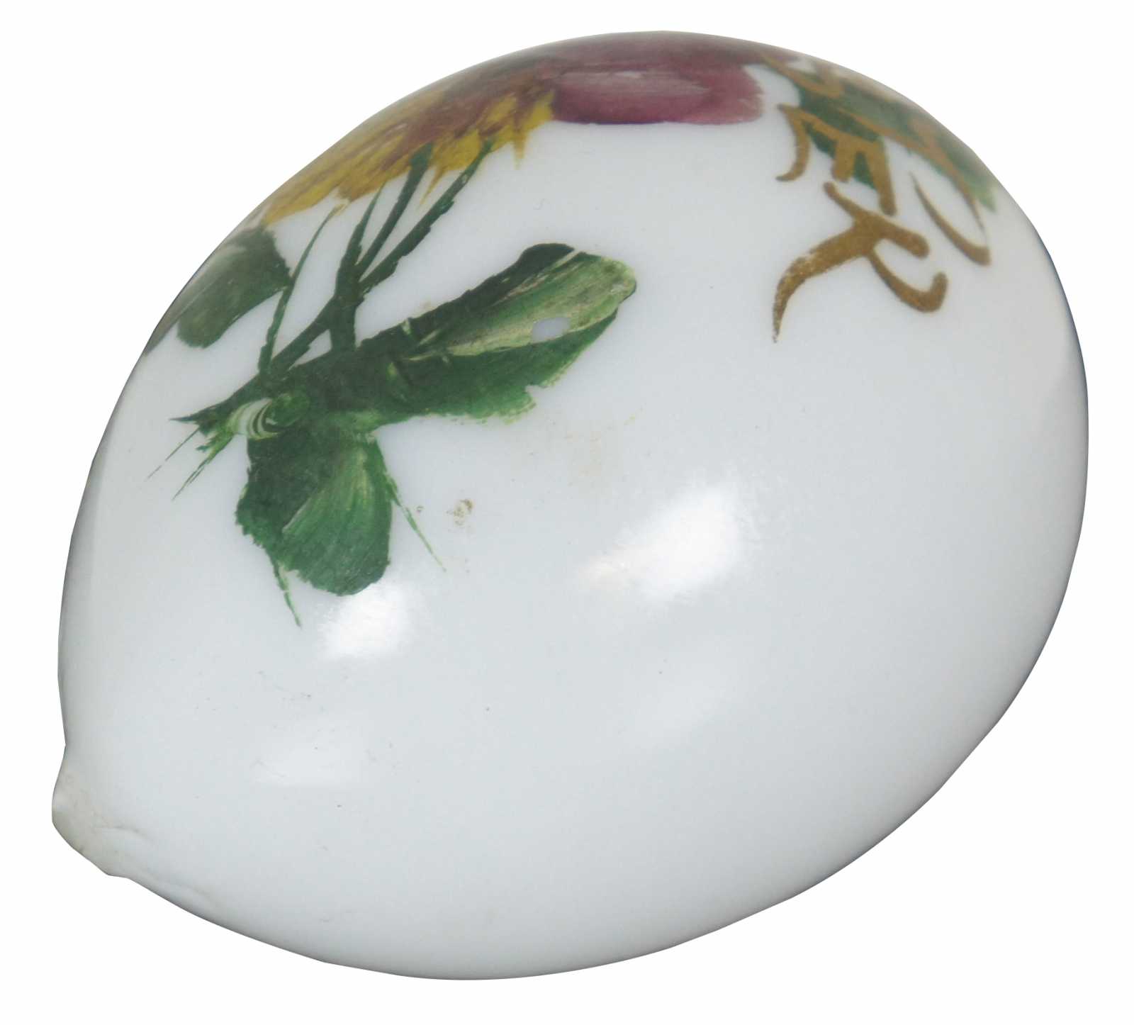 Antique Victorian hand blown and painted milk glass egg with “Easter “ in gold letters and a traditional purple and yellow pansy.