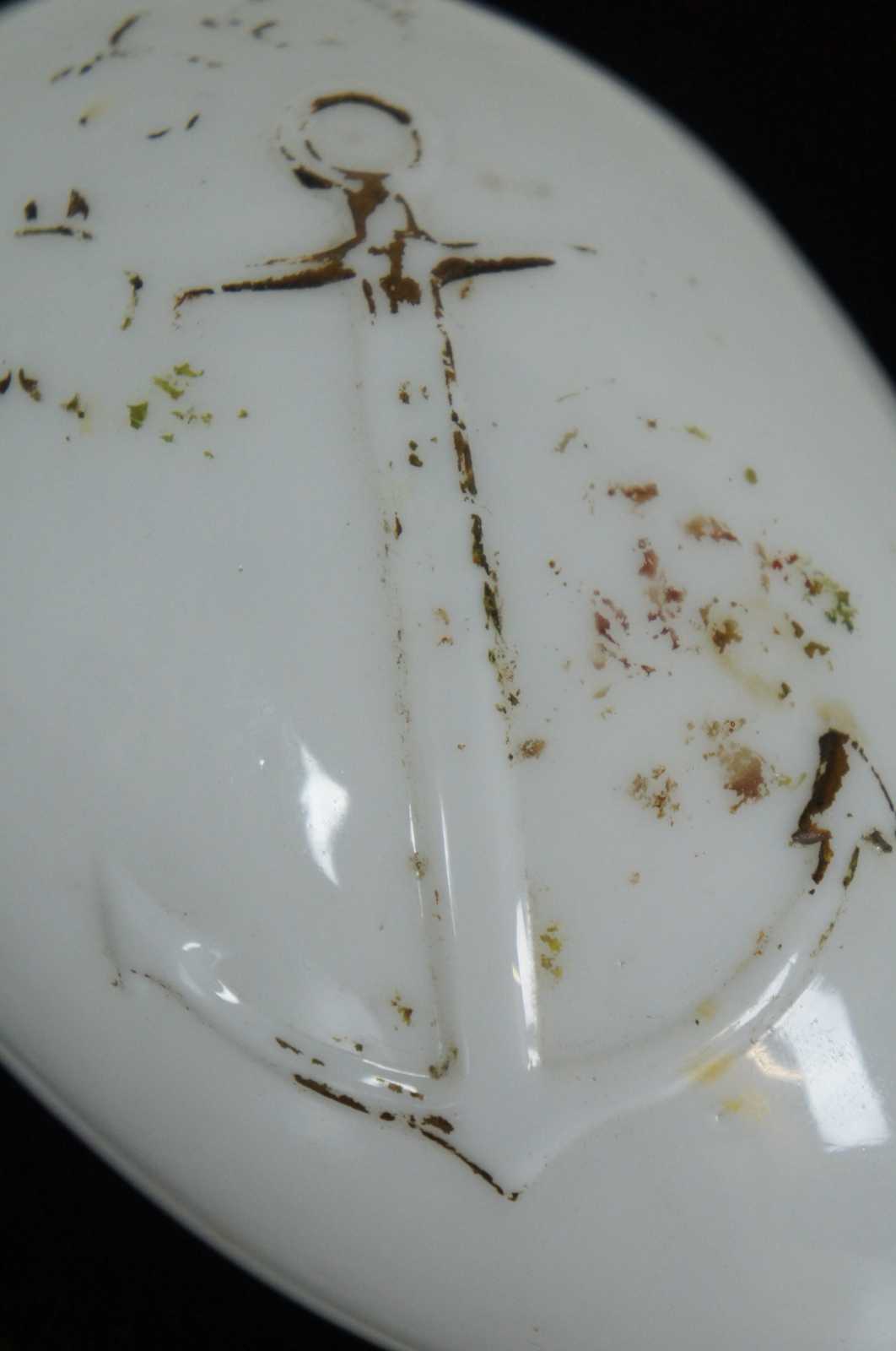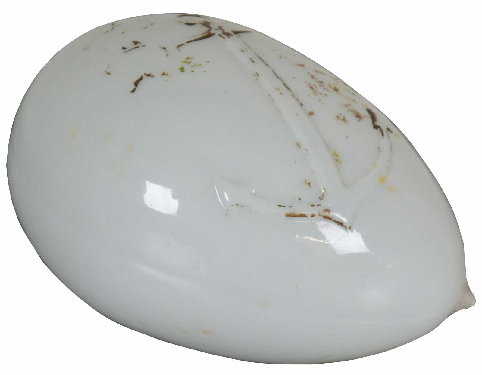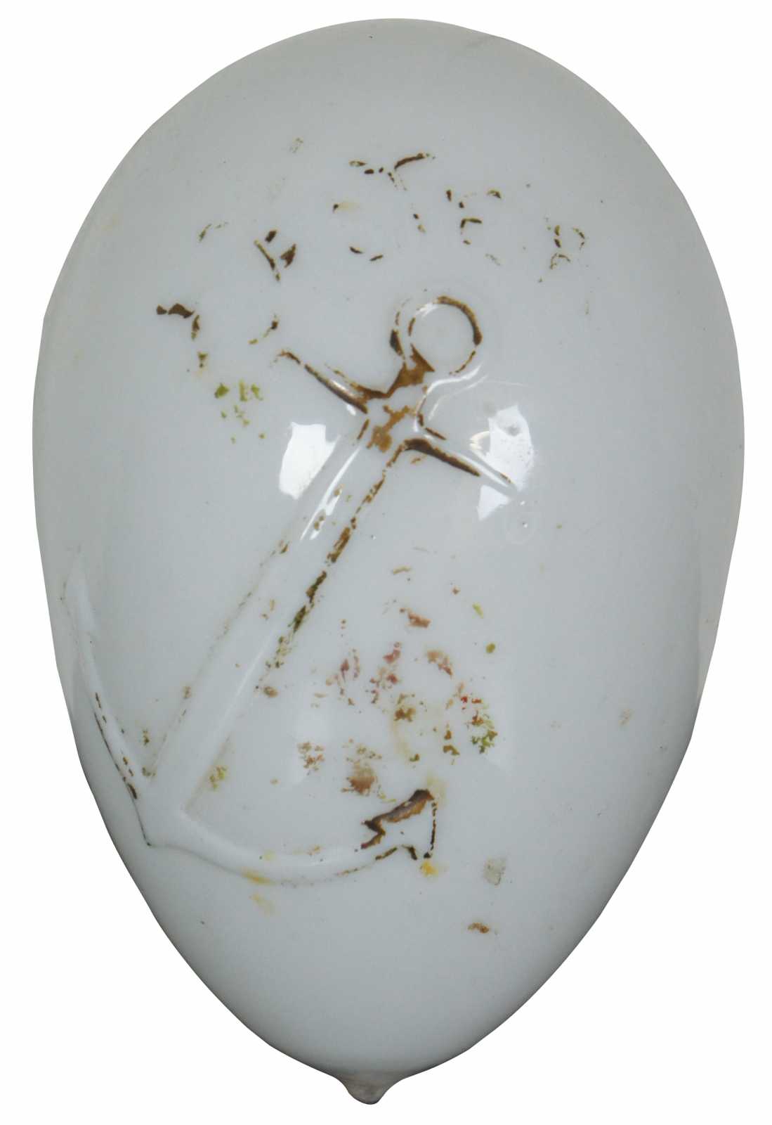 Antique Victorian hand blown and painted milk glass egg with “Easter” in gold letters and a raised anchor once surrounded by flowers.
