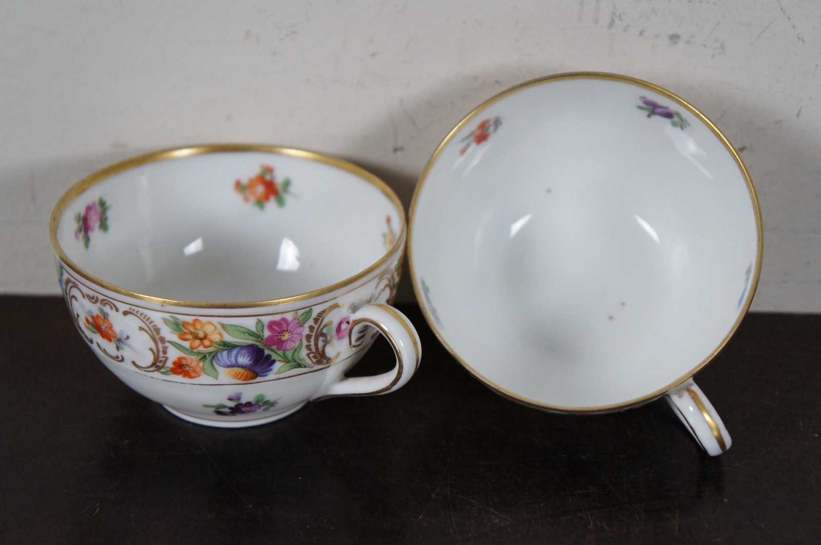 4 saucers and 6 cups by Shumann Bavaria, and 3 saucers and 3 cups from Schumann Dresden all in the Empress floral pattern.
