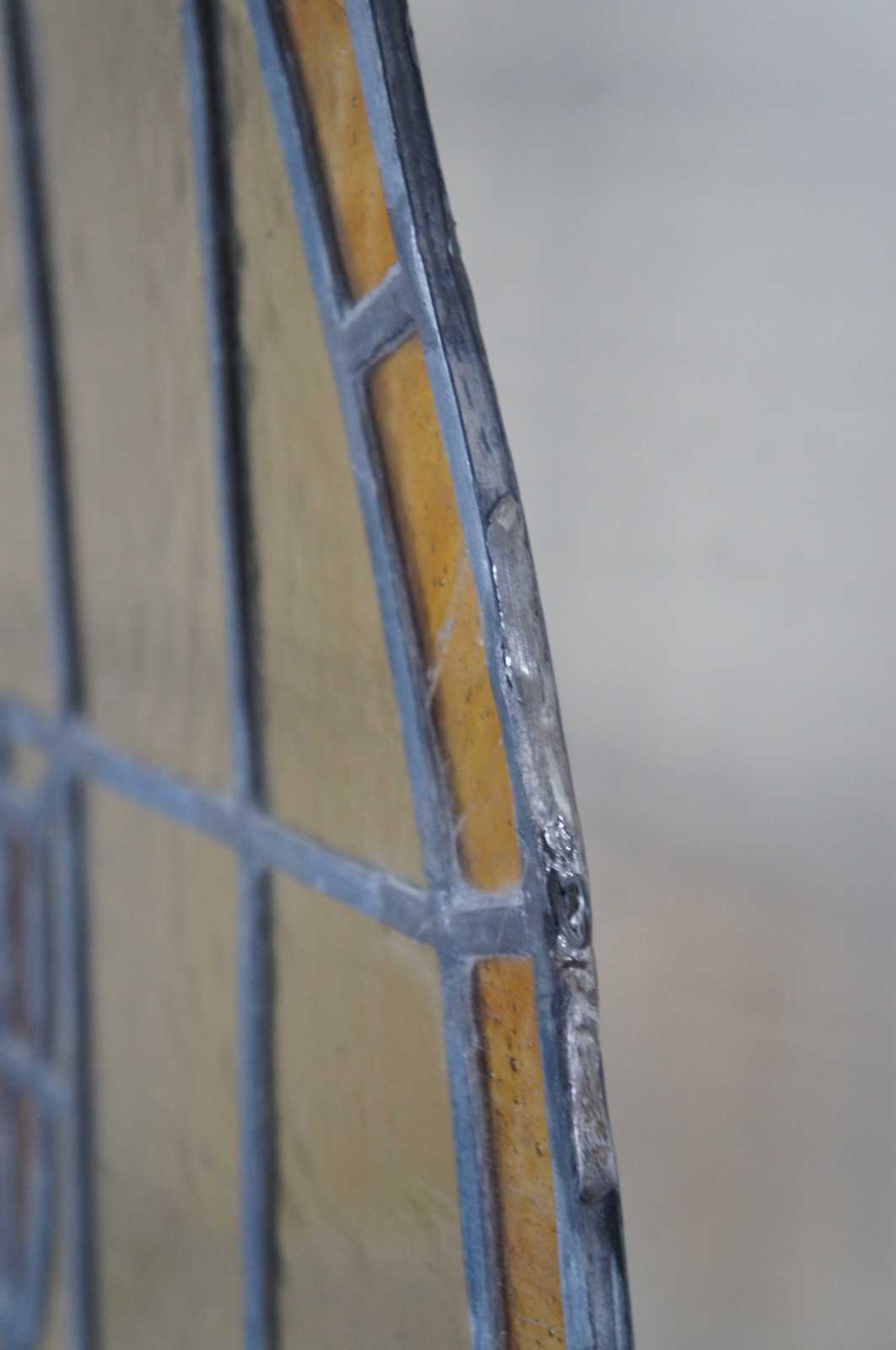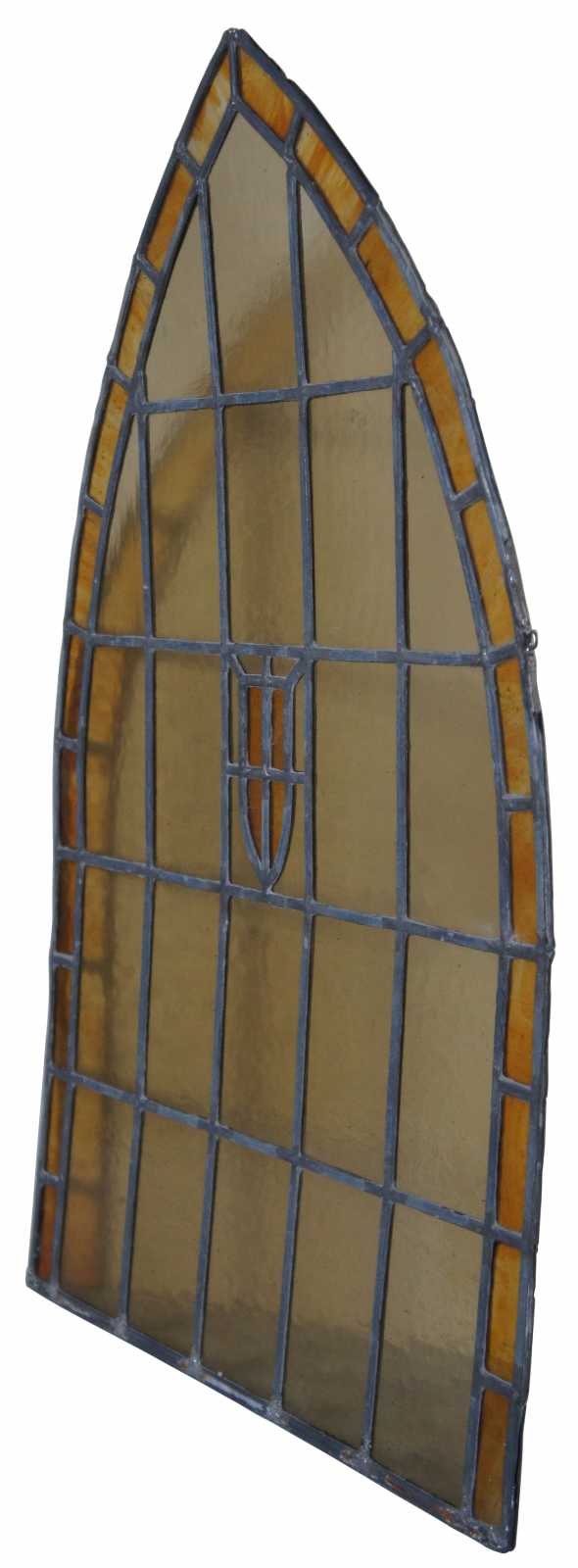Antique Gothic/Victorian leaded stained glass arch shaped window panels in light and dark shades of amber slag glass. Architectural salvage/ reclaimed. 5 Available.