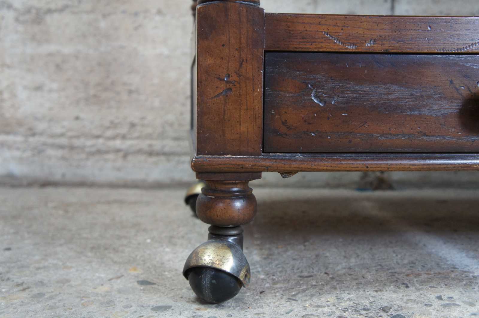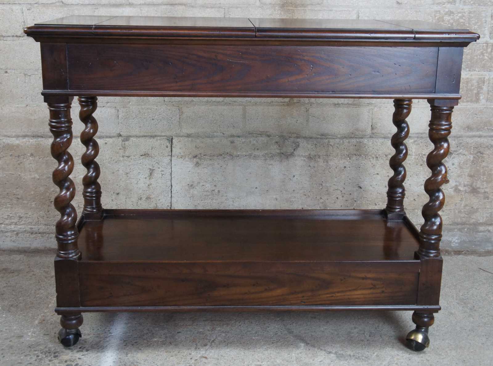 Vintage Henredon Four Centuries rolling buffet or server. Made of oak, featuring a flip top that opens over four barley twisted supports between two sets of drawers and large castors.
