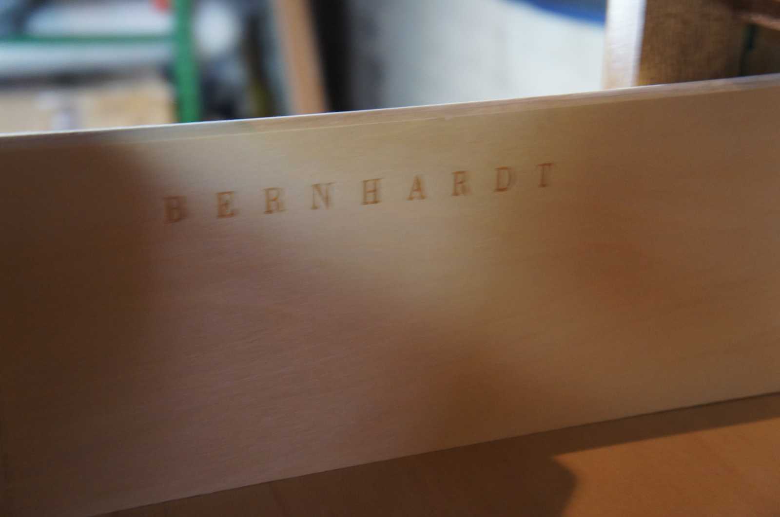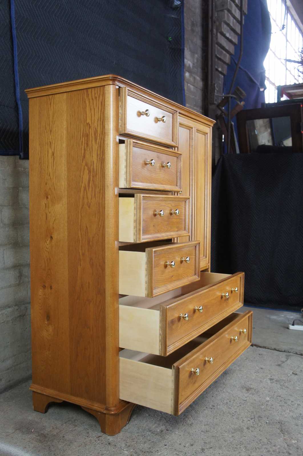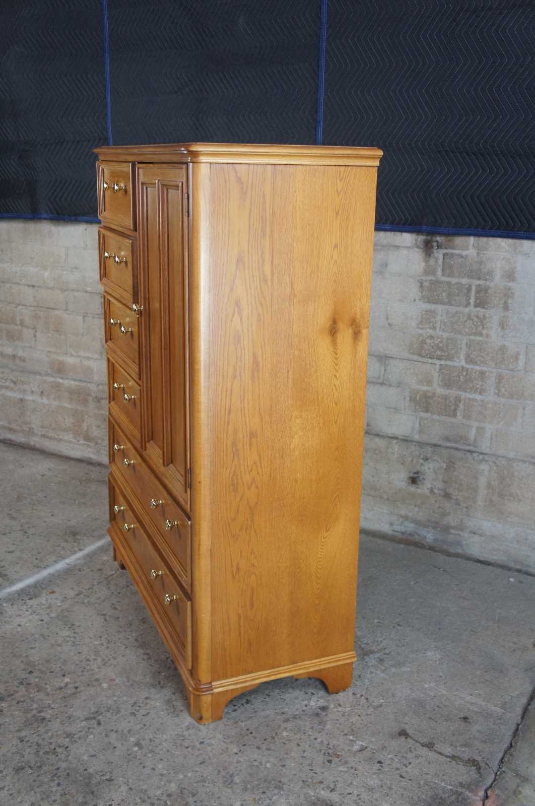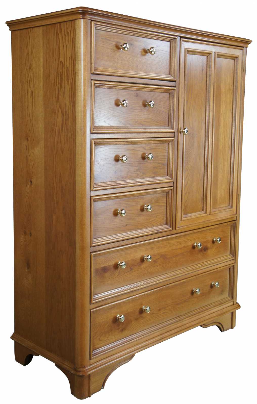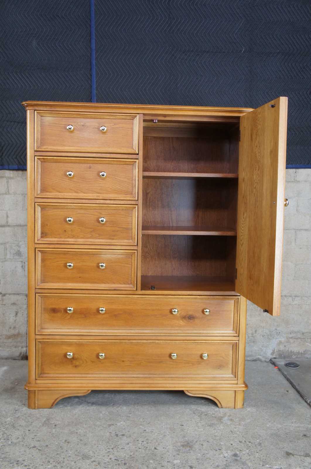 American Country chifferobe by Bernhardt. Circa 1990s. Made from Oak with six drawers, a cabinet with shelves for storage and brass hardware.