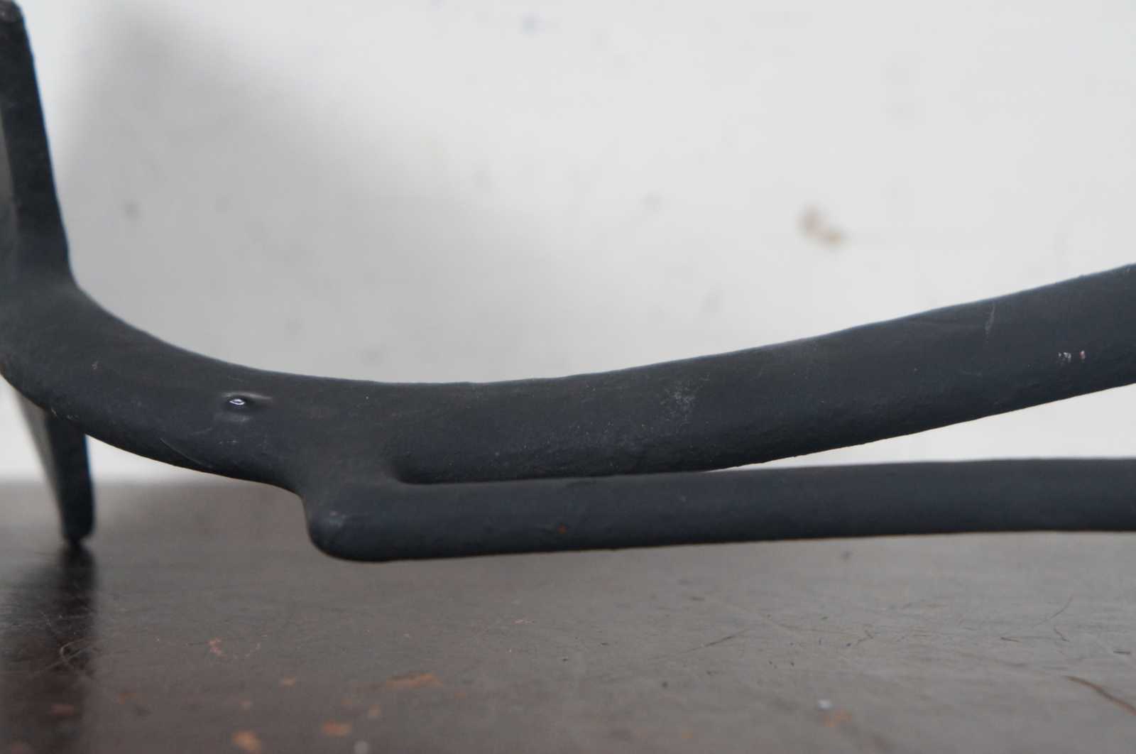 Single antique square cat iron carriage step with two arm support a ridged surface.