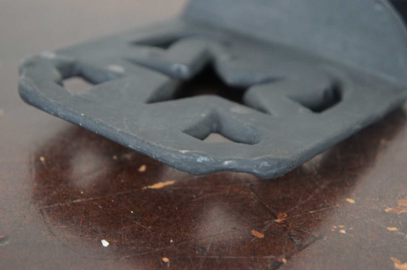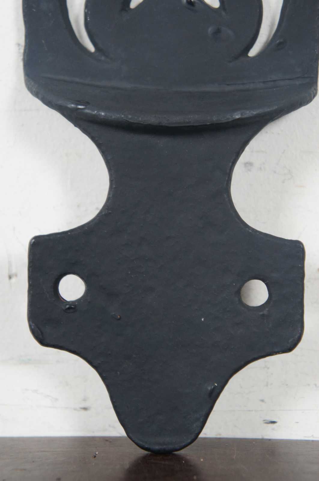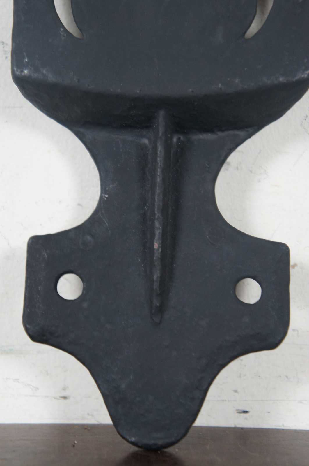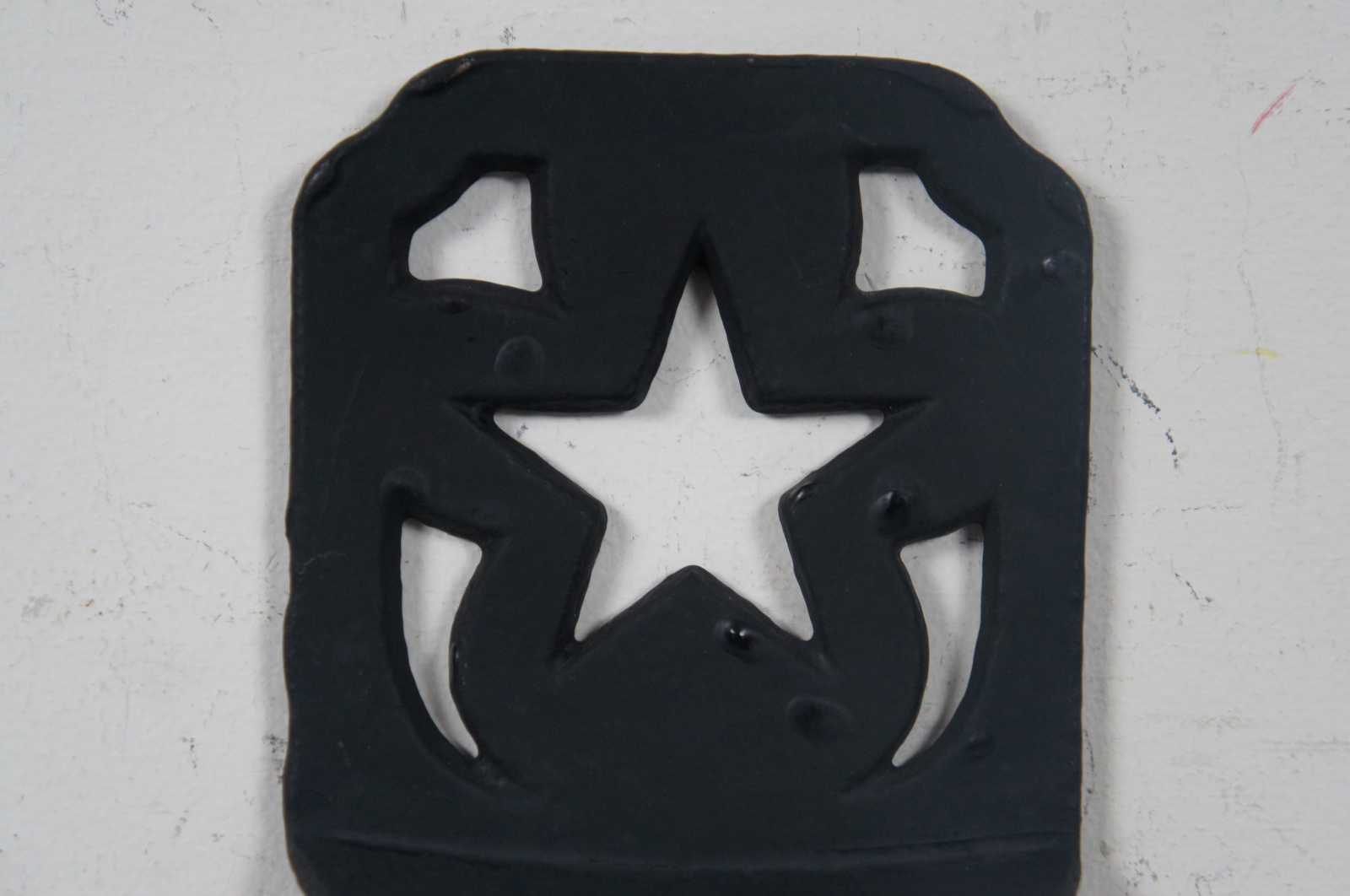 Single antique square cast iron carriage step with a simple pierced geometric design surrounding a five pointed star.