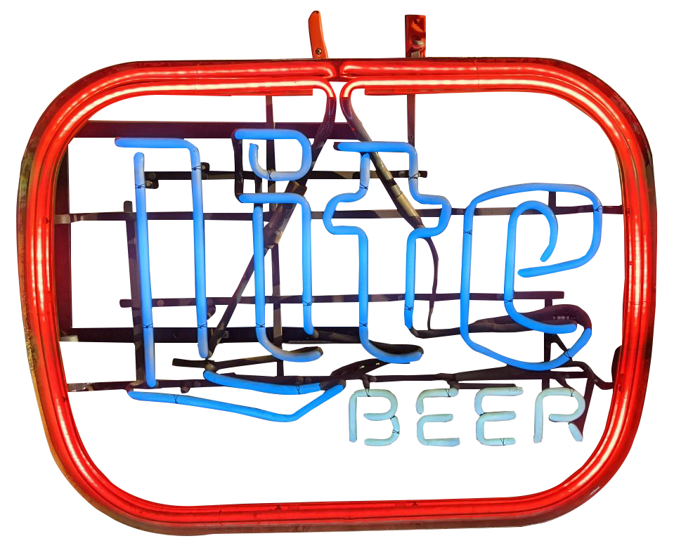 Vintage 1987 Miller Light neon beer sign. Made in Maspeth NY by Universal Electric Sign Co for Miller Brewing Company of Milwaukee Wisconsin.