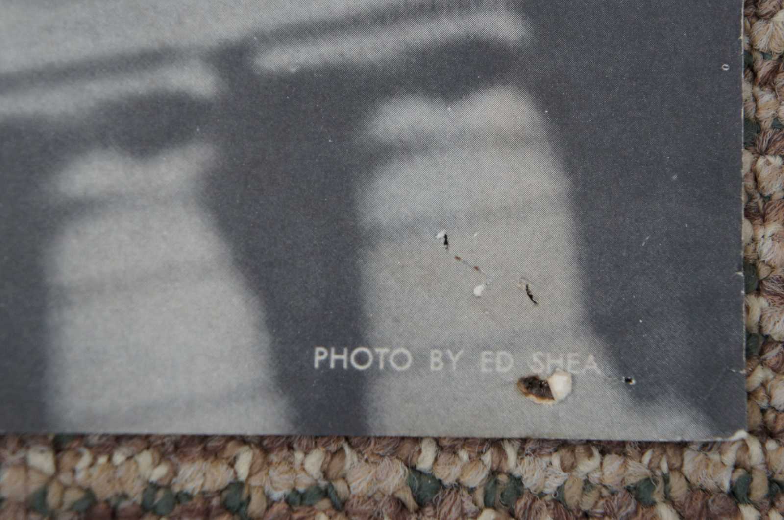 Good Overall - Glue residue to reverse; pinholes; some small scrapes/spot stains; fading/faint yellowing; see pictures