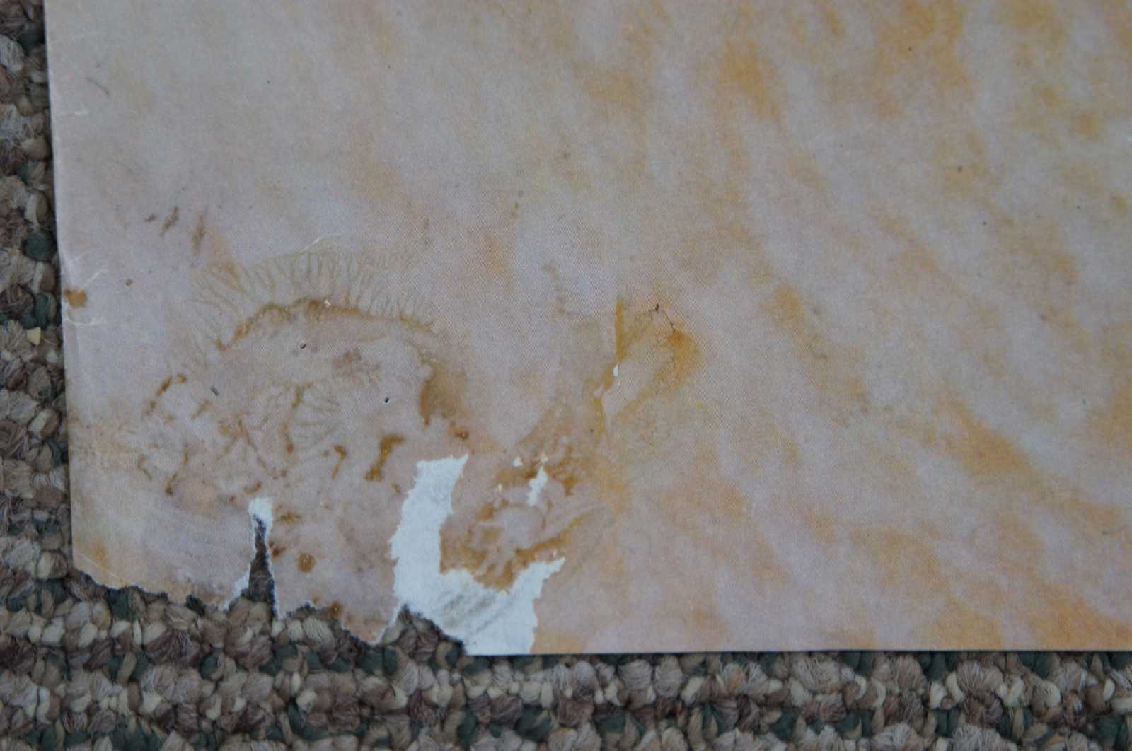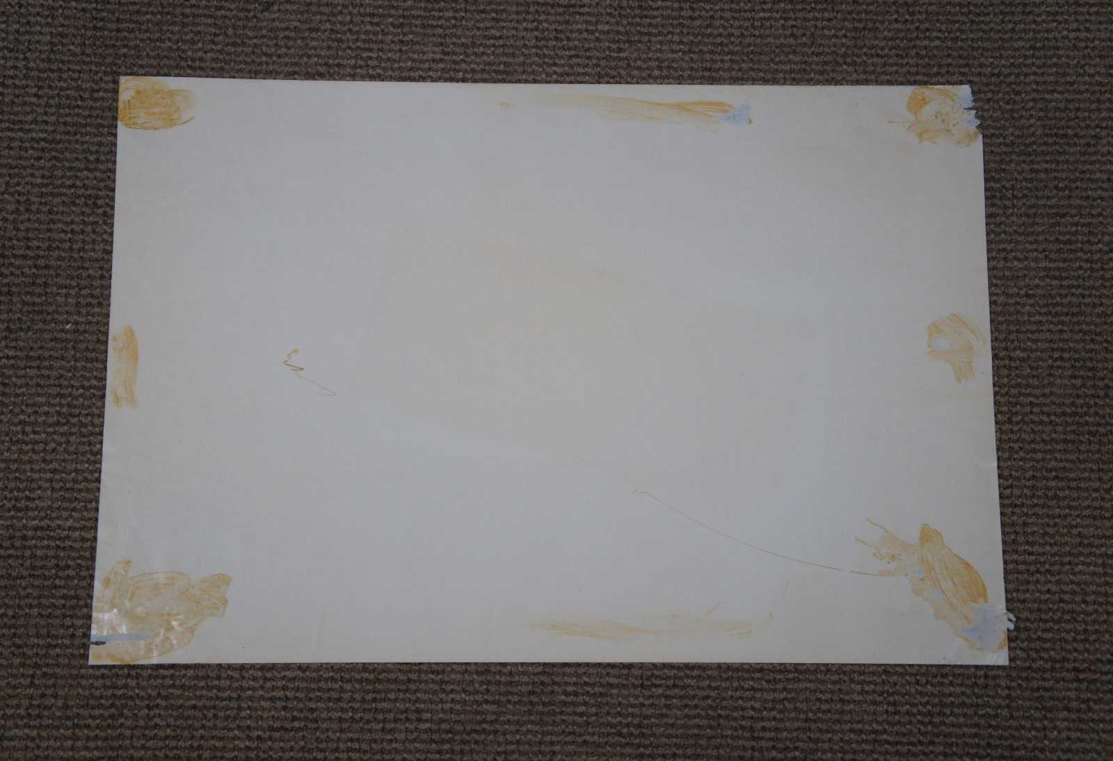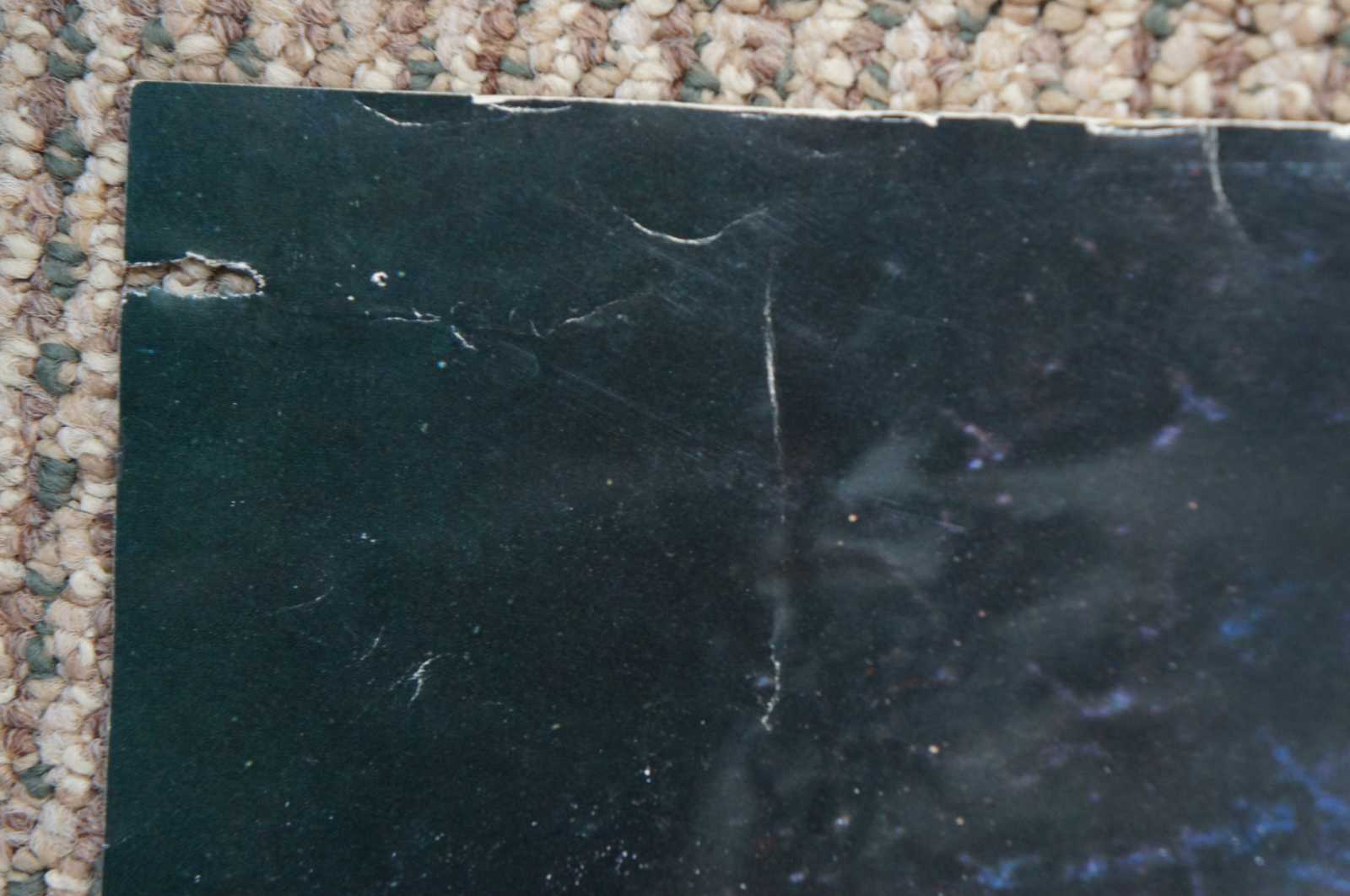 Good Overall - Glue residue on reverse; pinholes; two torn corners; stain on one corner; see pictures
