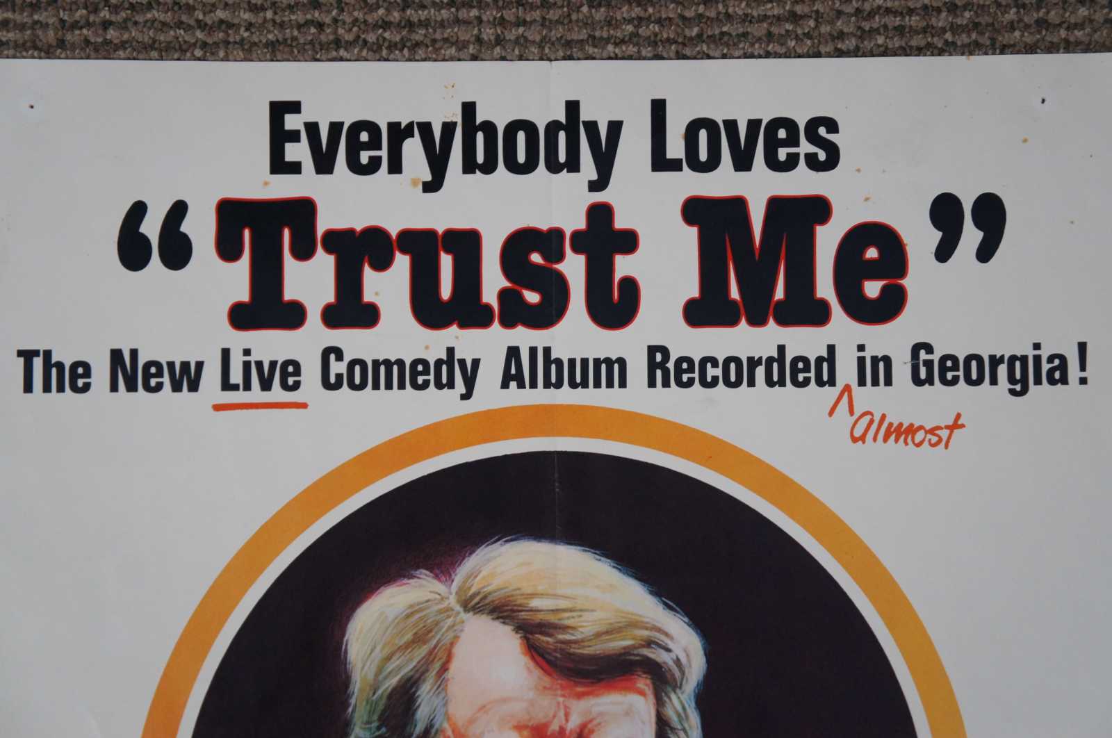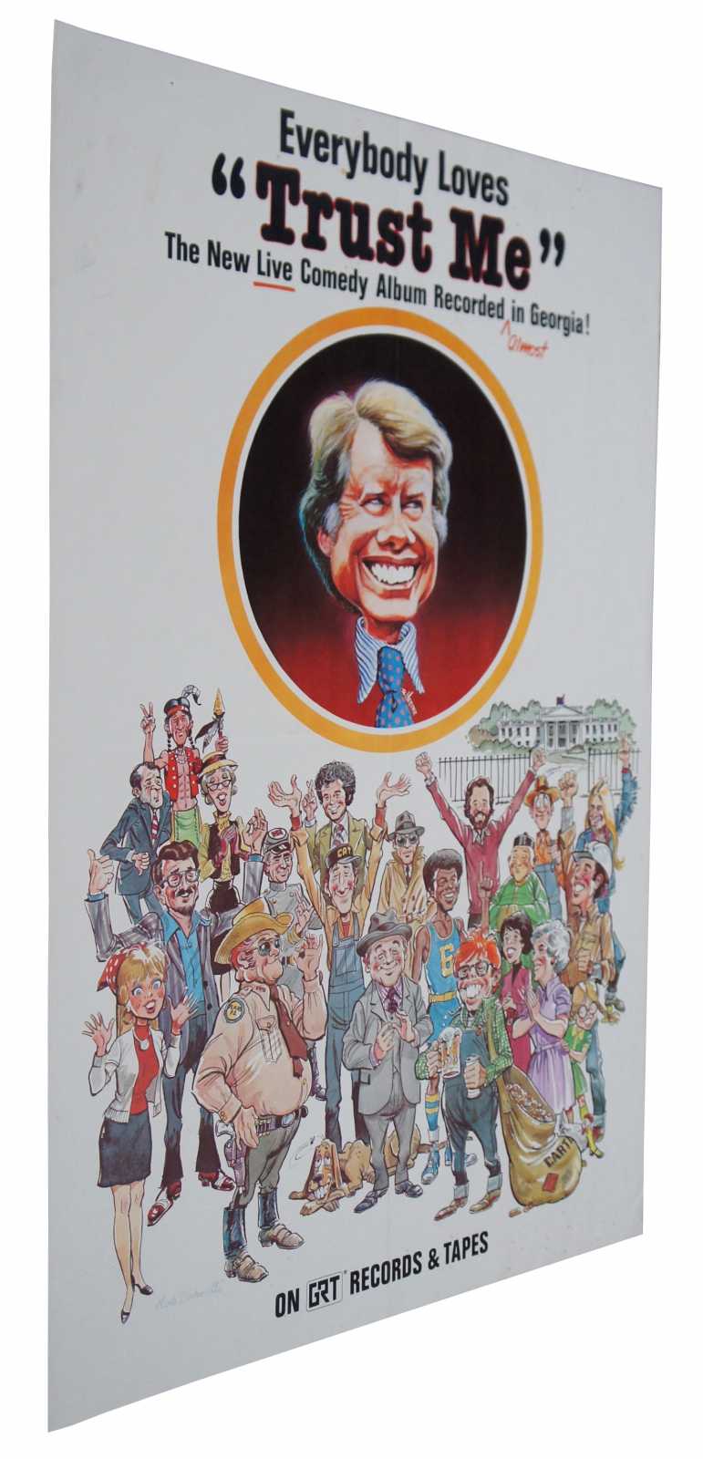 Vintage 1977 promotional poster for Everybody Loves “Trust Me” a comedy album by Hans Petersen in which he impersonates President Jimmy Carter. GRT Records & Tapes.