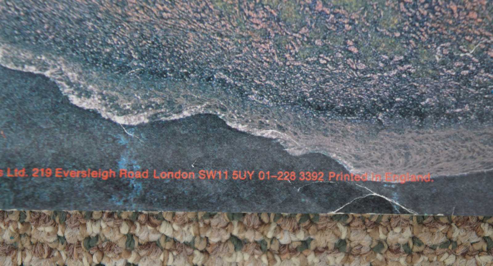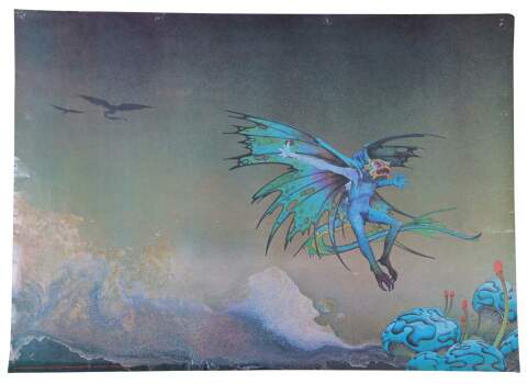 Original vintage 1970’s art poster titled “Blue Demon” by Roger Dean, printed in England for Bog O Posters Ltd. William Roger Dean, known as Roger Dean, is an English artist, designer, and publisher. He is best known for his work on posters and album covers for musicians, which he began painting in the late 1960s. The artists for whom he did the most art are English rock bands Yes and Asia.