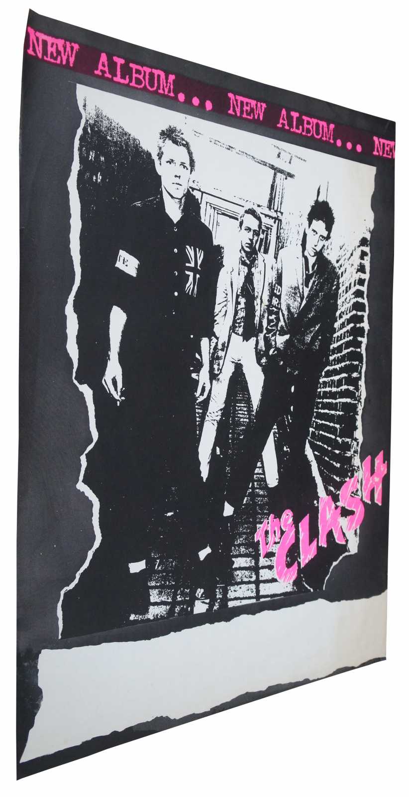 Original 1970’s New Album concert poster for The Clash. The Clash is the self-titled debut studio album by English punk rock band the Clash. It was released on 8 April 1977 through CBS Records. Written and recorded over three weeks in February 1977 for £4,000, it would go on to reach No. 12 on the UK charts, and has been included on many retrospective rankings as one of the greatest punk albums of all time.
