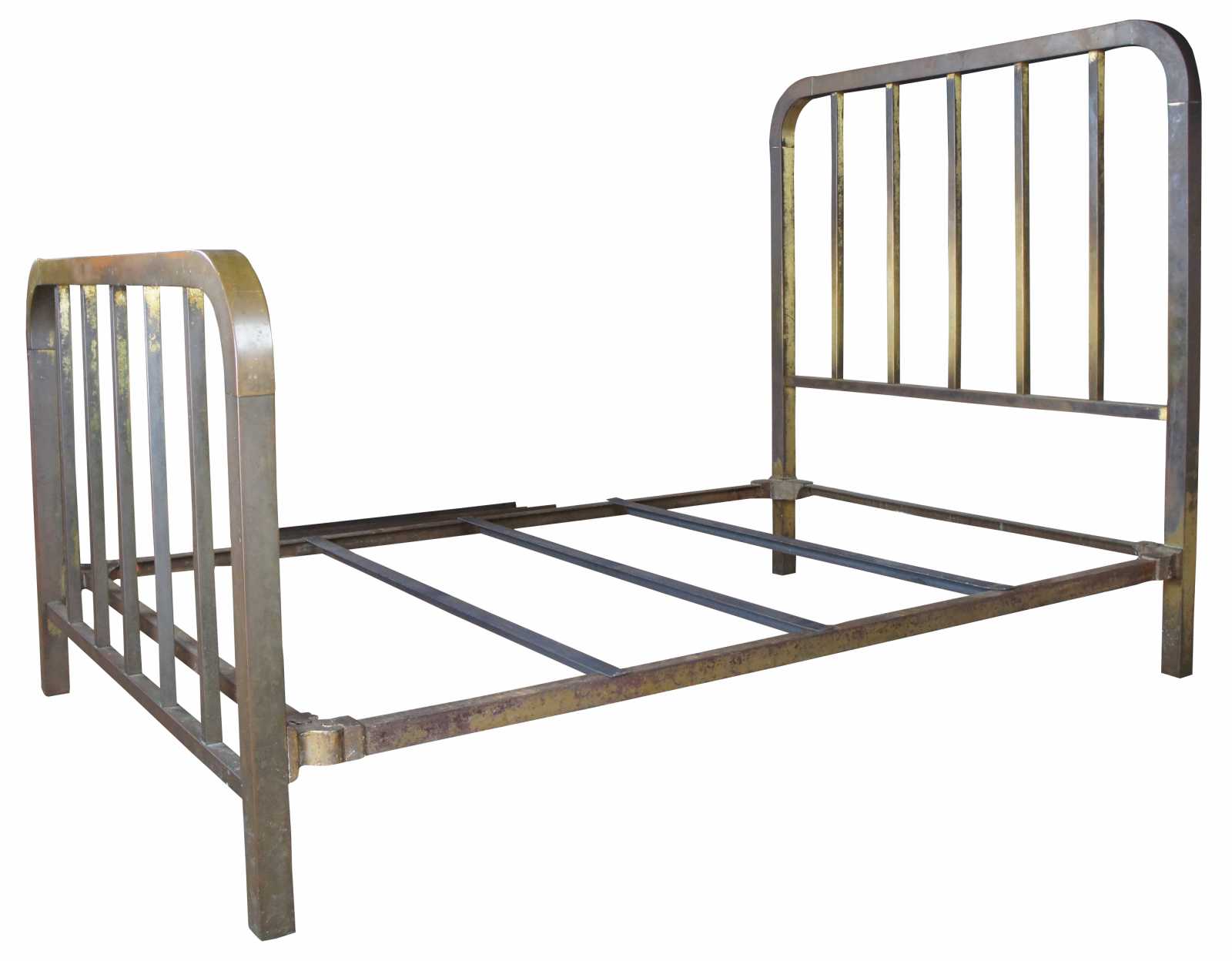 Antique brass and iron bed frame. Features square cut posts and turned corners.