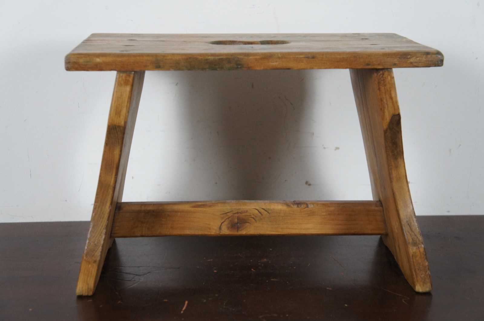 Vitnage hand made wooden step stool. Made of pine with rustic or country farmhouse inspired design.
