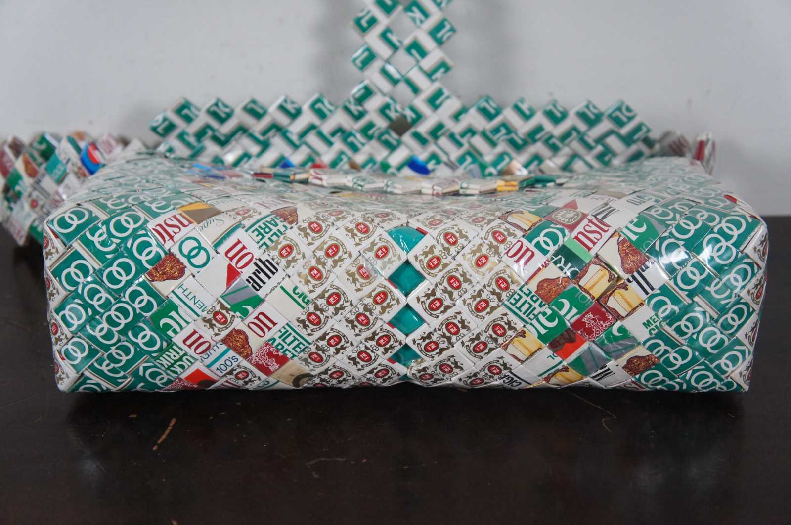 Vintage prison art shoulder bag intricately crafted out of up-cycled cigarette packages.