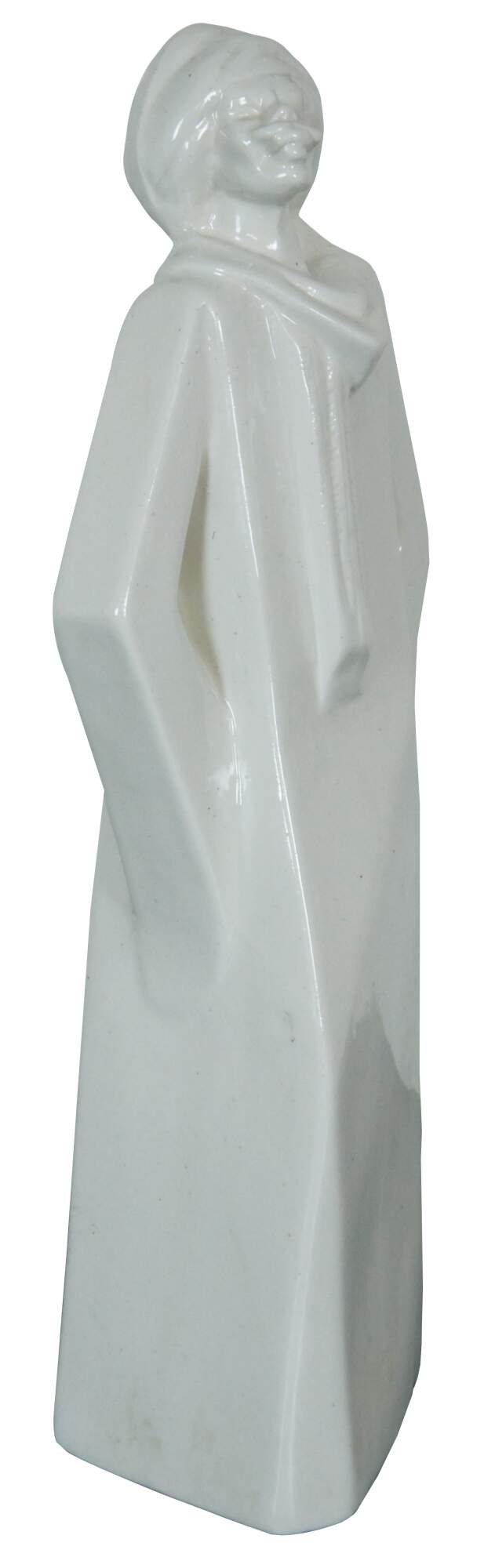 Vintage white porcelain statue purchased in Yemen / Egypt / Middle East circa 1980s with a mustache, wearing a turban, scarf, and long tunic.