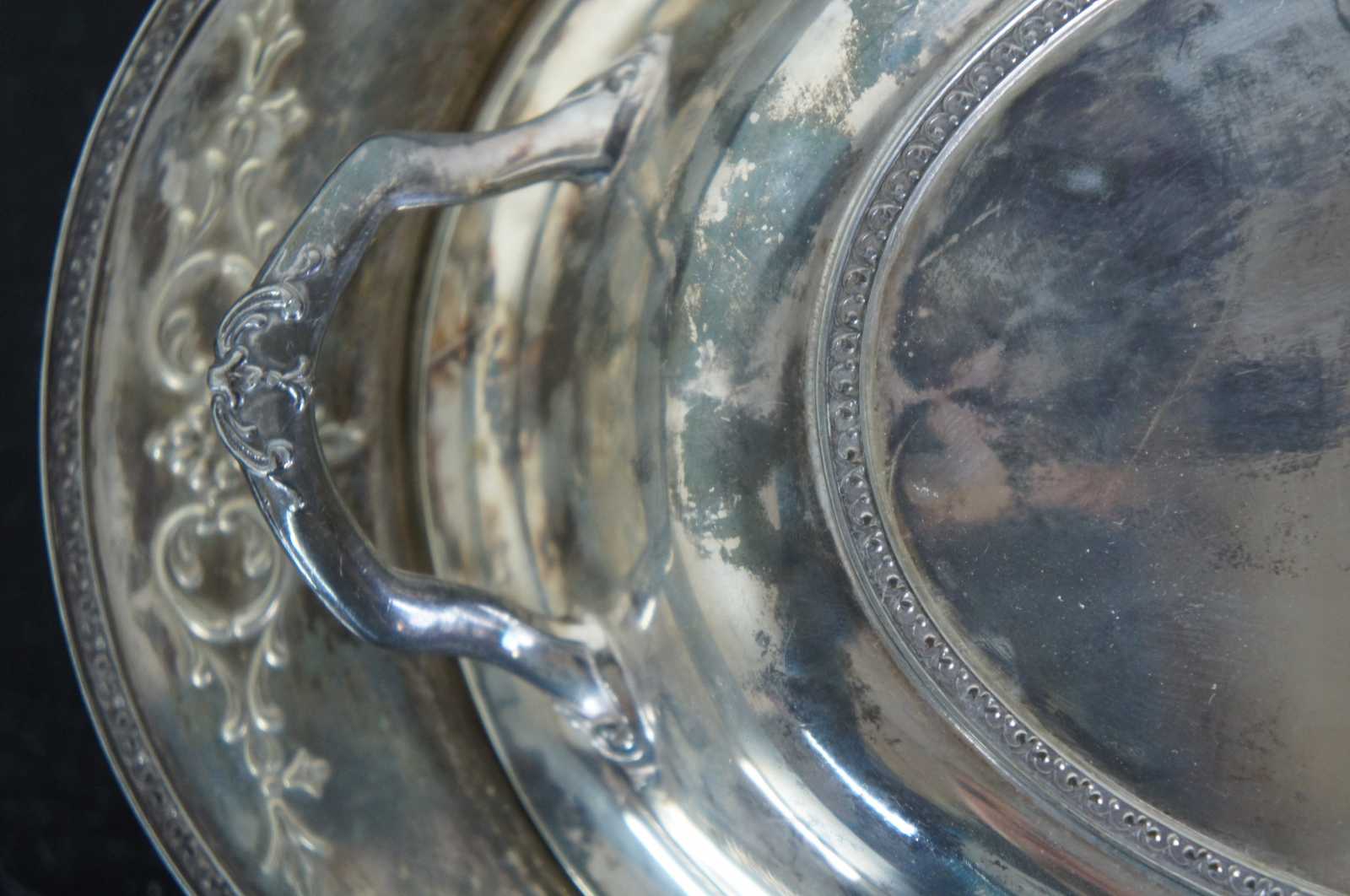 Homan Manufacturing Company EPNS 01072 Louisiana silver plate oval serving or warming dish with double handled lid.