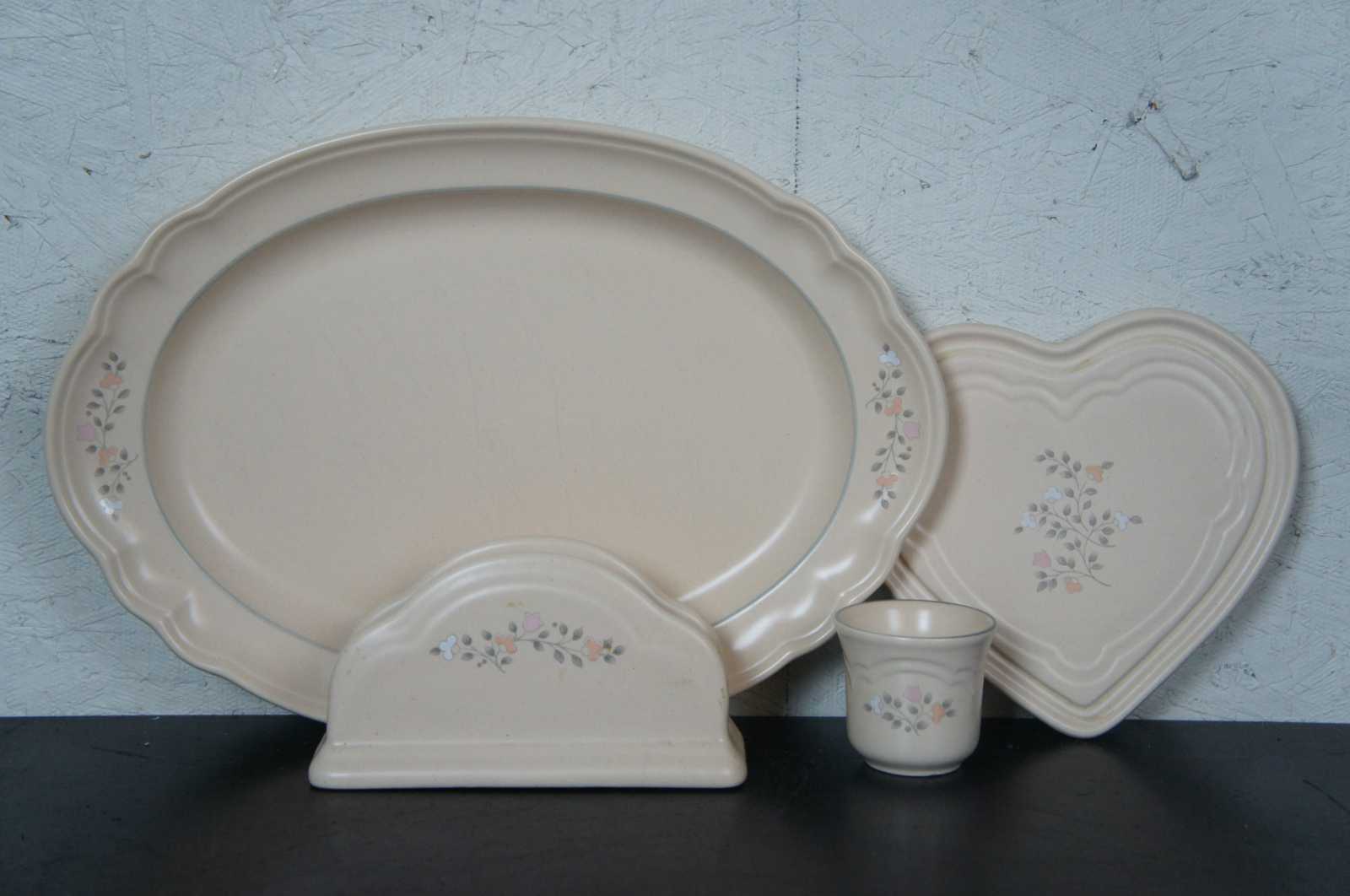 Large 70 piece dinnerware set by Pfaltzgraff in the Remembrance pattern and the Pfaltzgraff Collectors Cookbook.