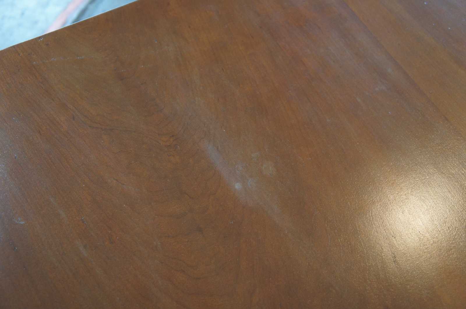 Antique American Empire pedestal center table. Made of mahogany with a crotch veneer featuring a square form and pedestal base with castors.