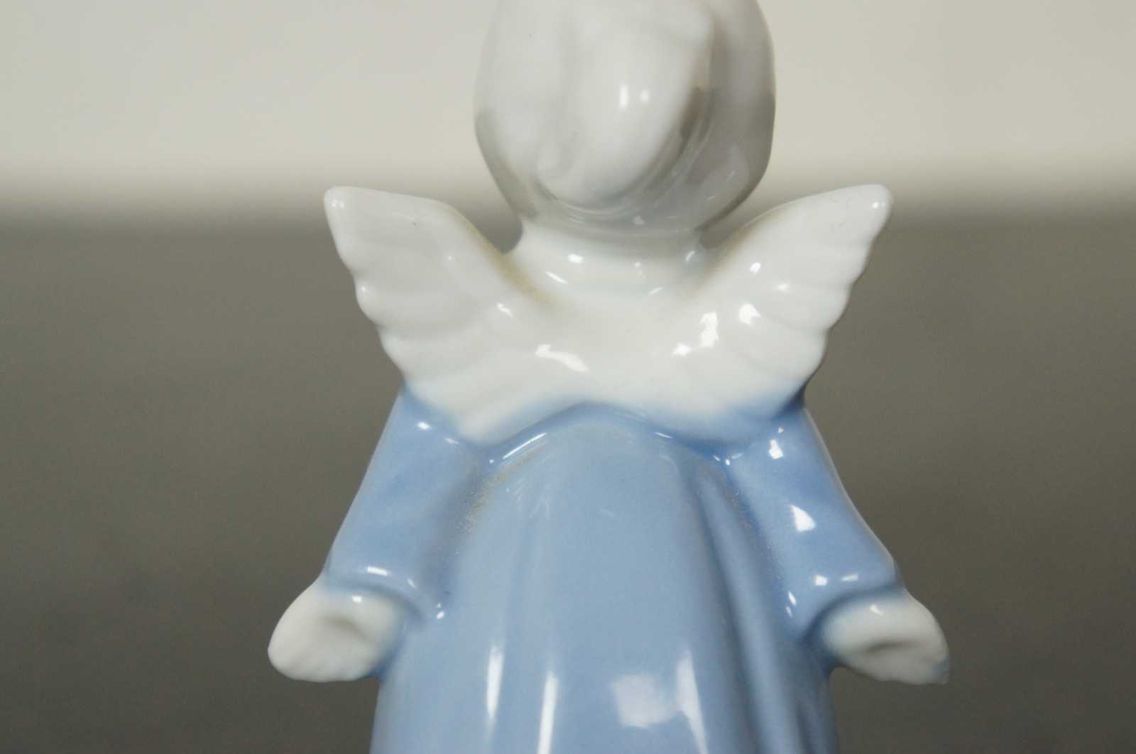 Vintage Porcelain Blue & White Glazed Kissing Figurine Angel Young Girl 4"