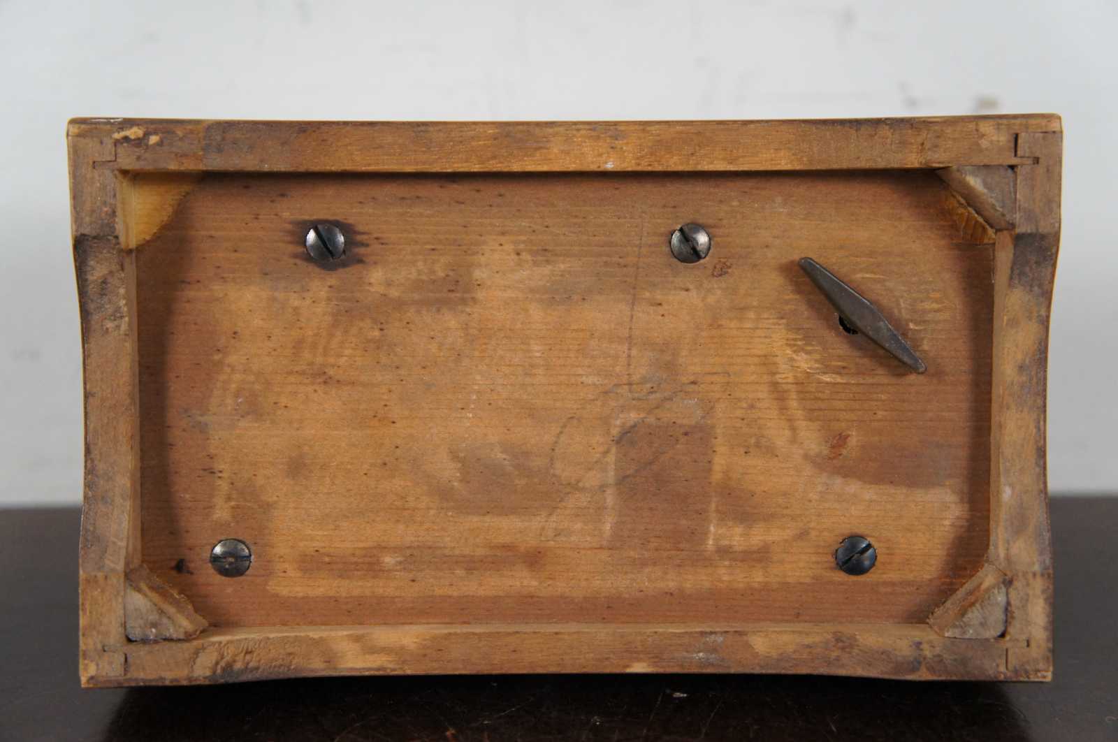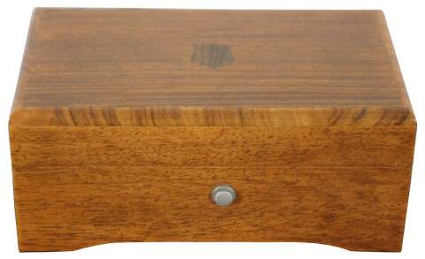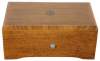 Vintage Thorens walnut music box with shield inlay, plays fifty two notes and four consecutive tunes: Blue Danube Waltz, Faust March, Santa Lucia, and Tales from the Vienna Woods. Made in Switzerland.