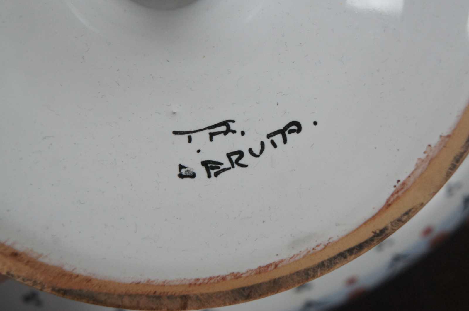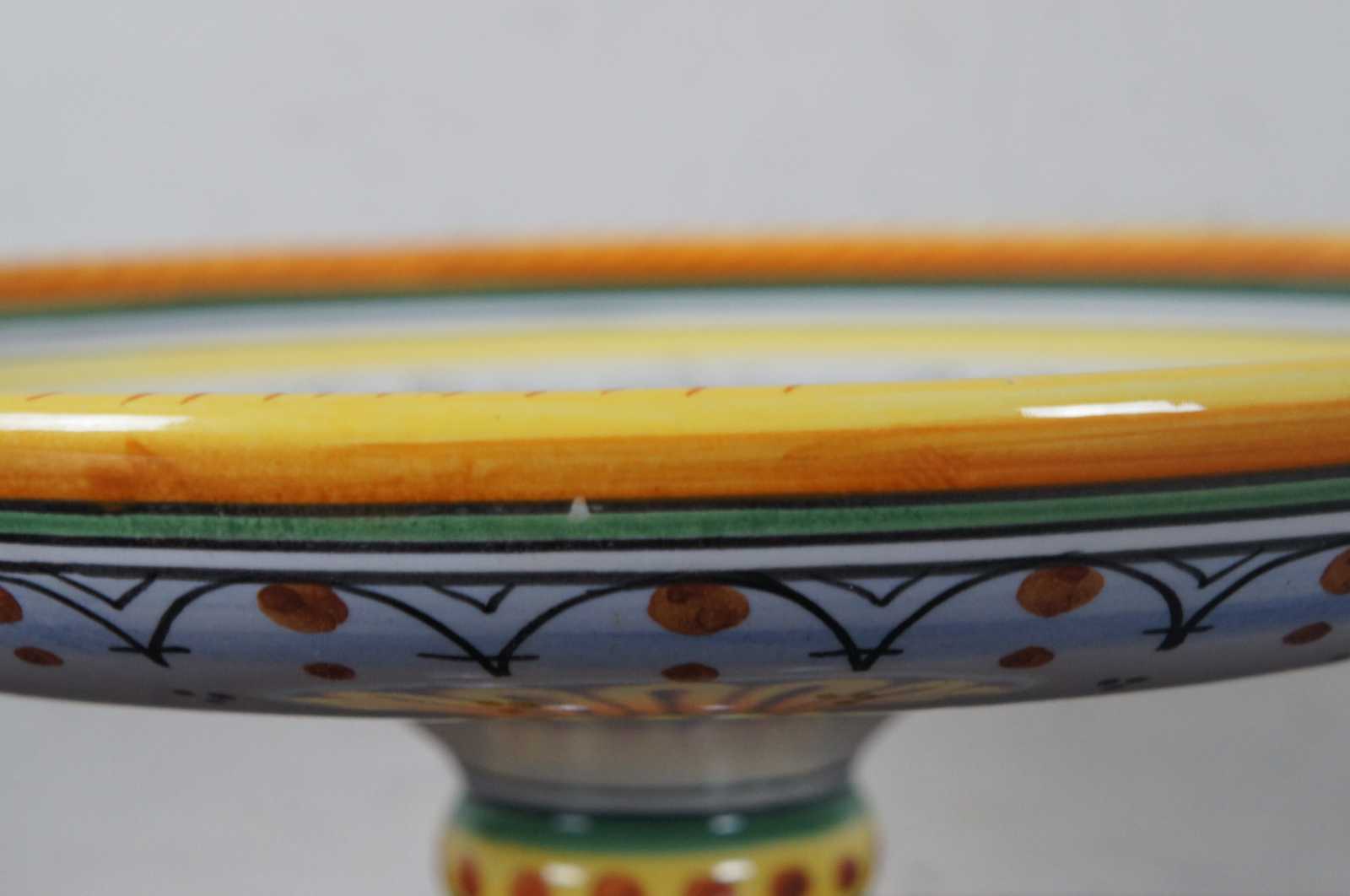 Hand made Deruta Italian pottery cake stand with Raffaellesco dragons.“Among the most popular and enduring Italian majolica patterns, the classic “Raffaellesco” traces its origin to 16th century, and the graceful arabesques of Raphael's famous frescoes.