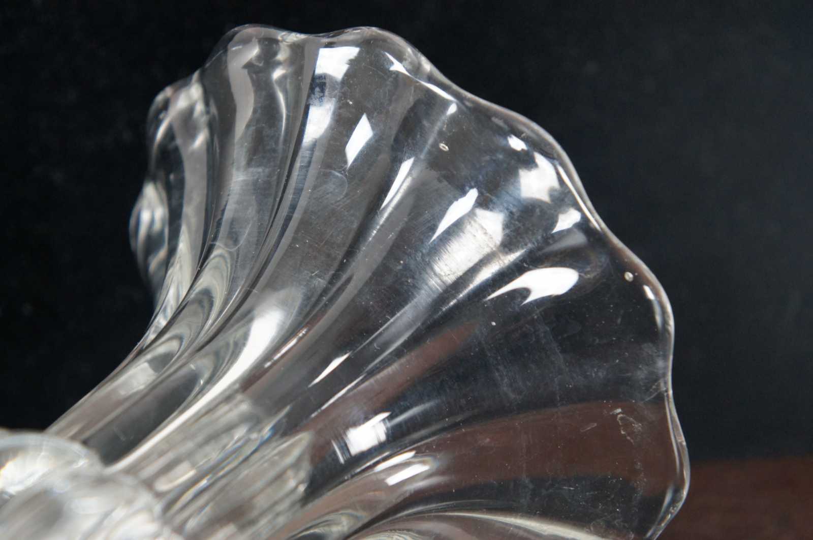 Pair of vintage Heisey glass flower vases in the Crystolite pattern.