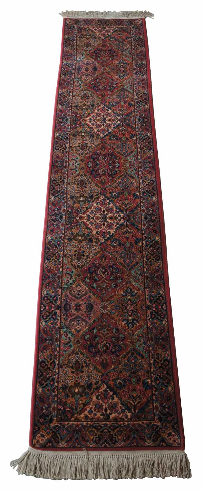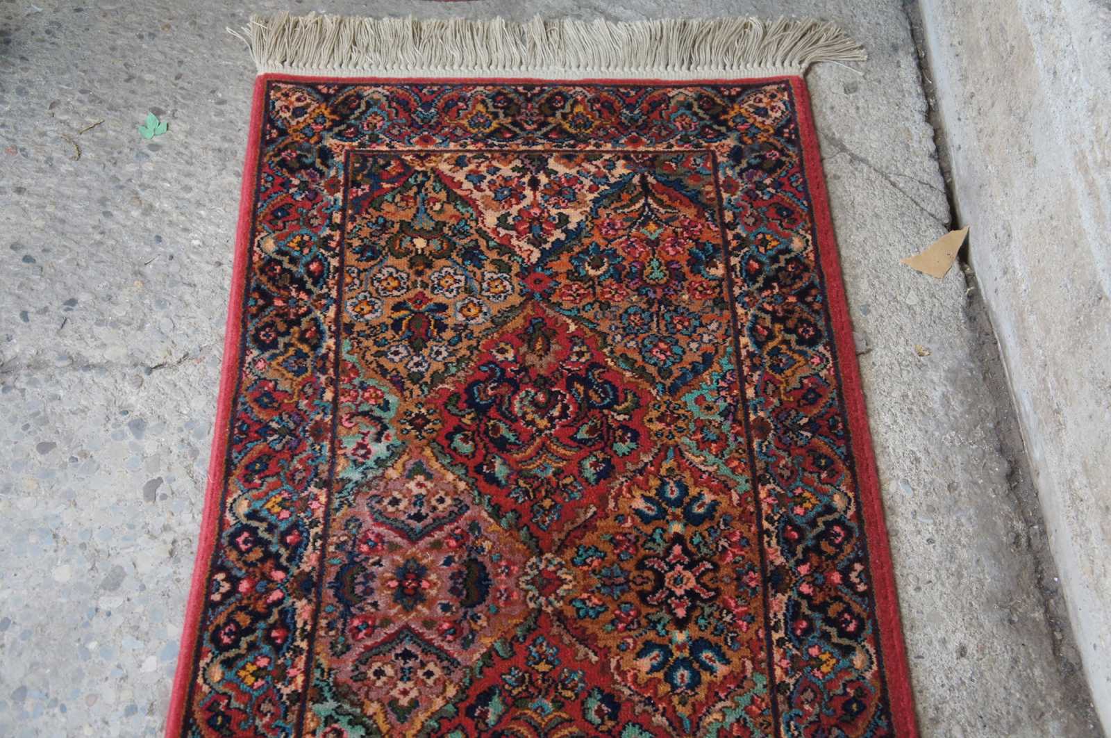 Vintage Karastan 100% worsted wool geometric multicolor panel Kirman rug or carpet. Design #717.