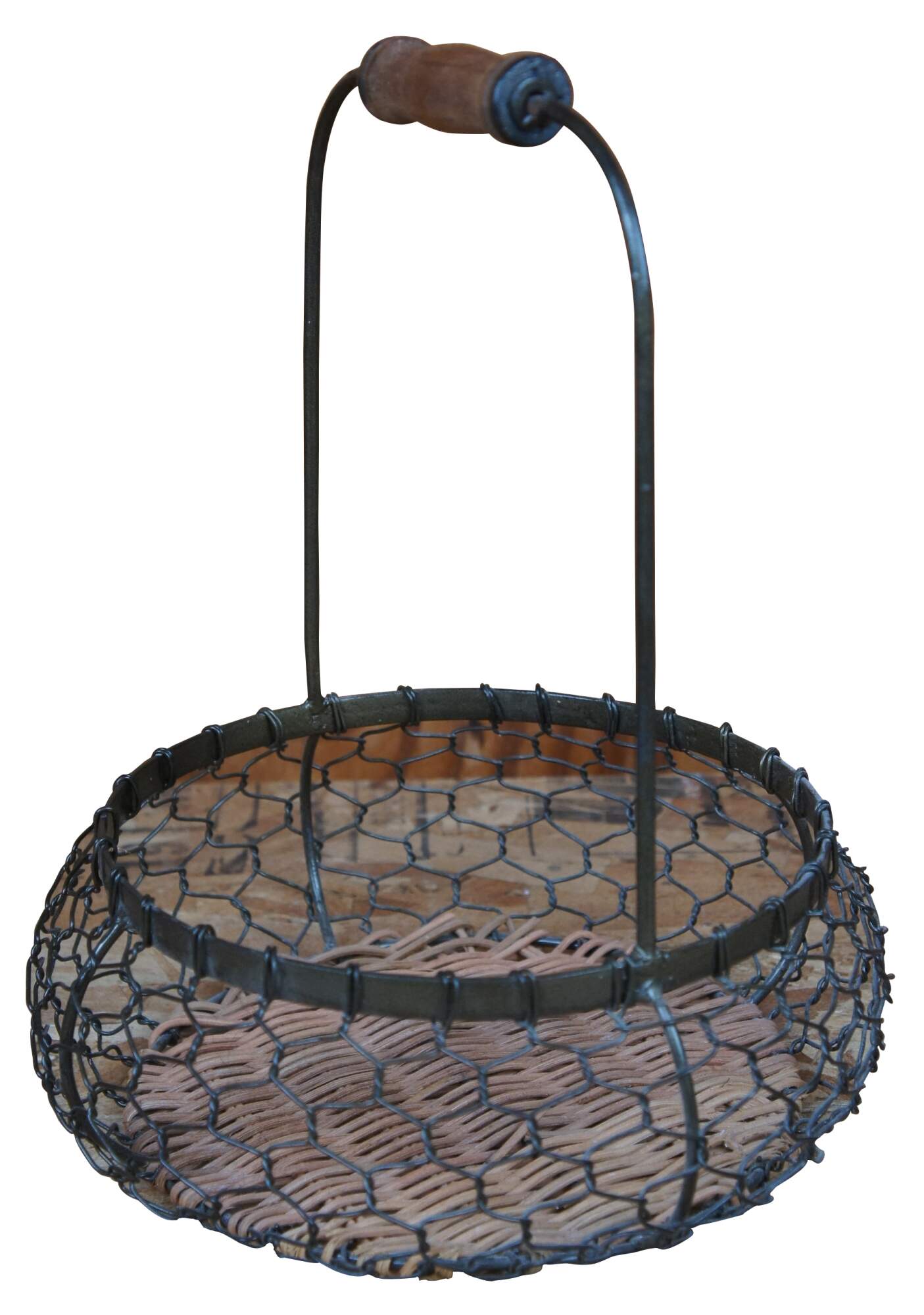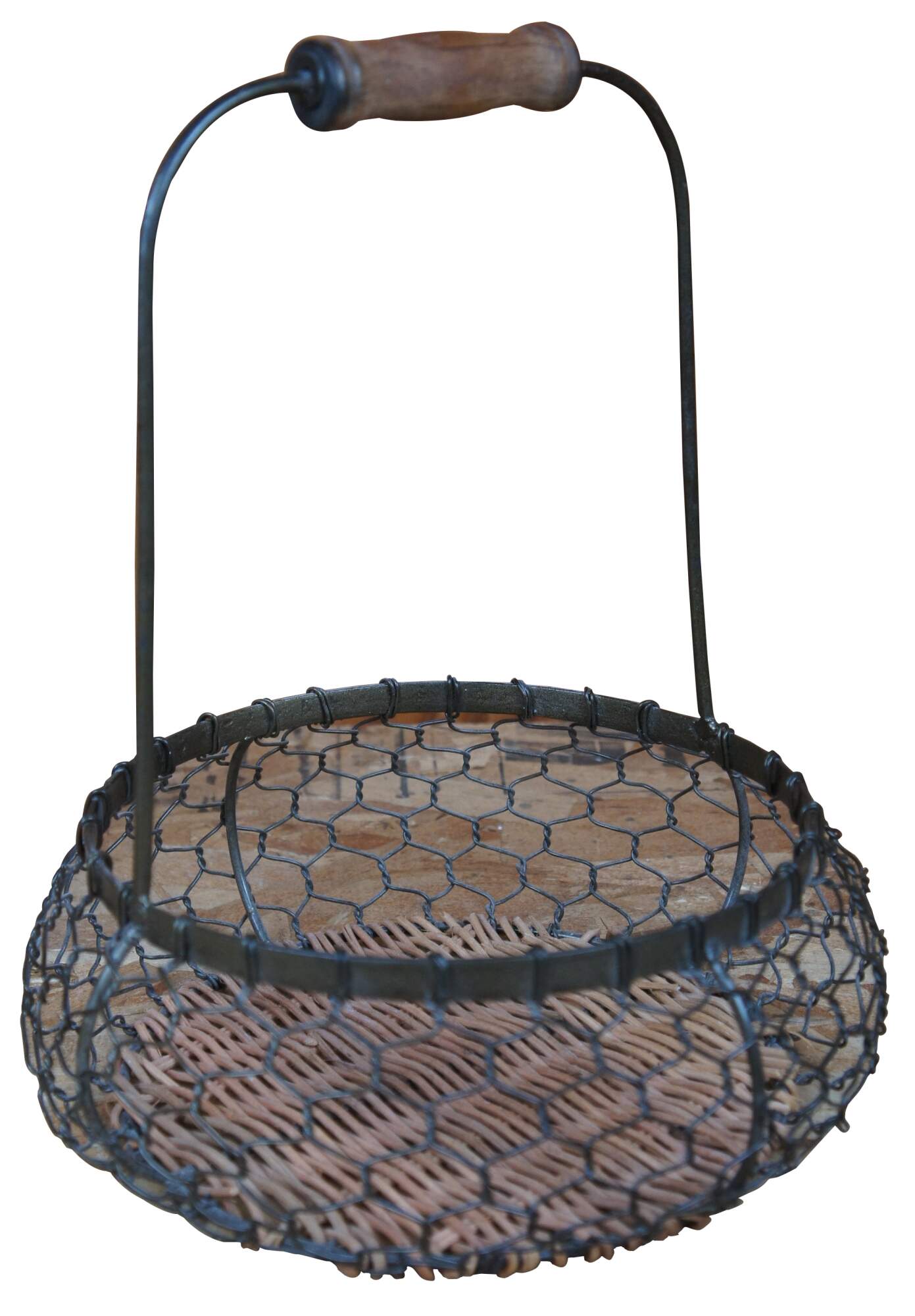 This wire and wicker basket is made in a lovely rustic farmhouse design that brings to mind egg gathering.