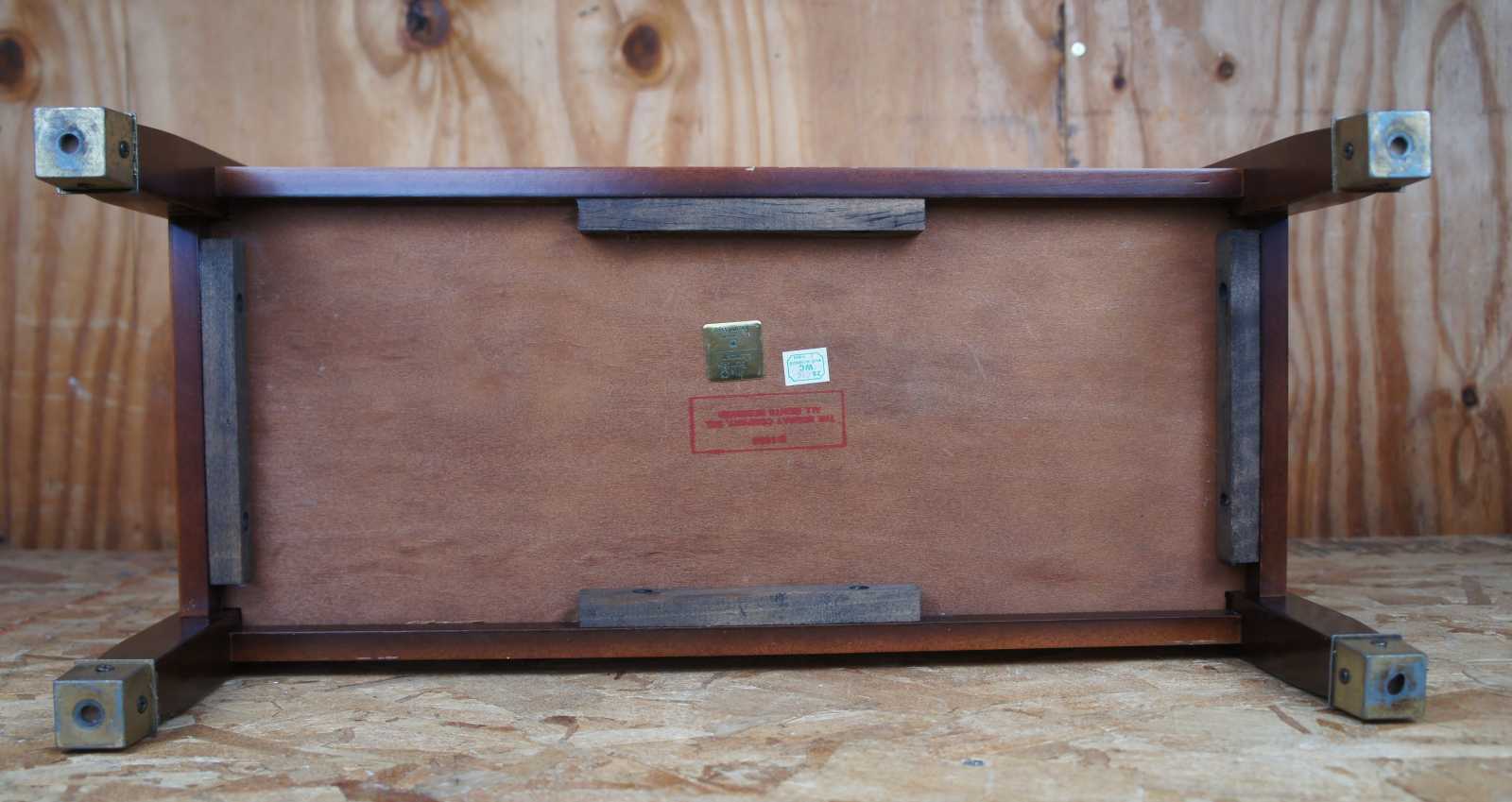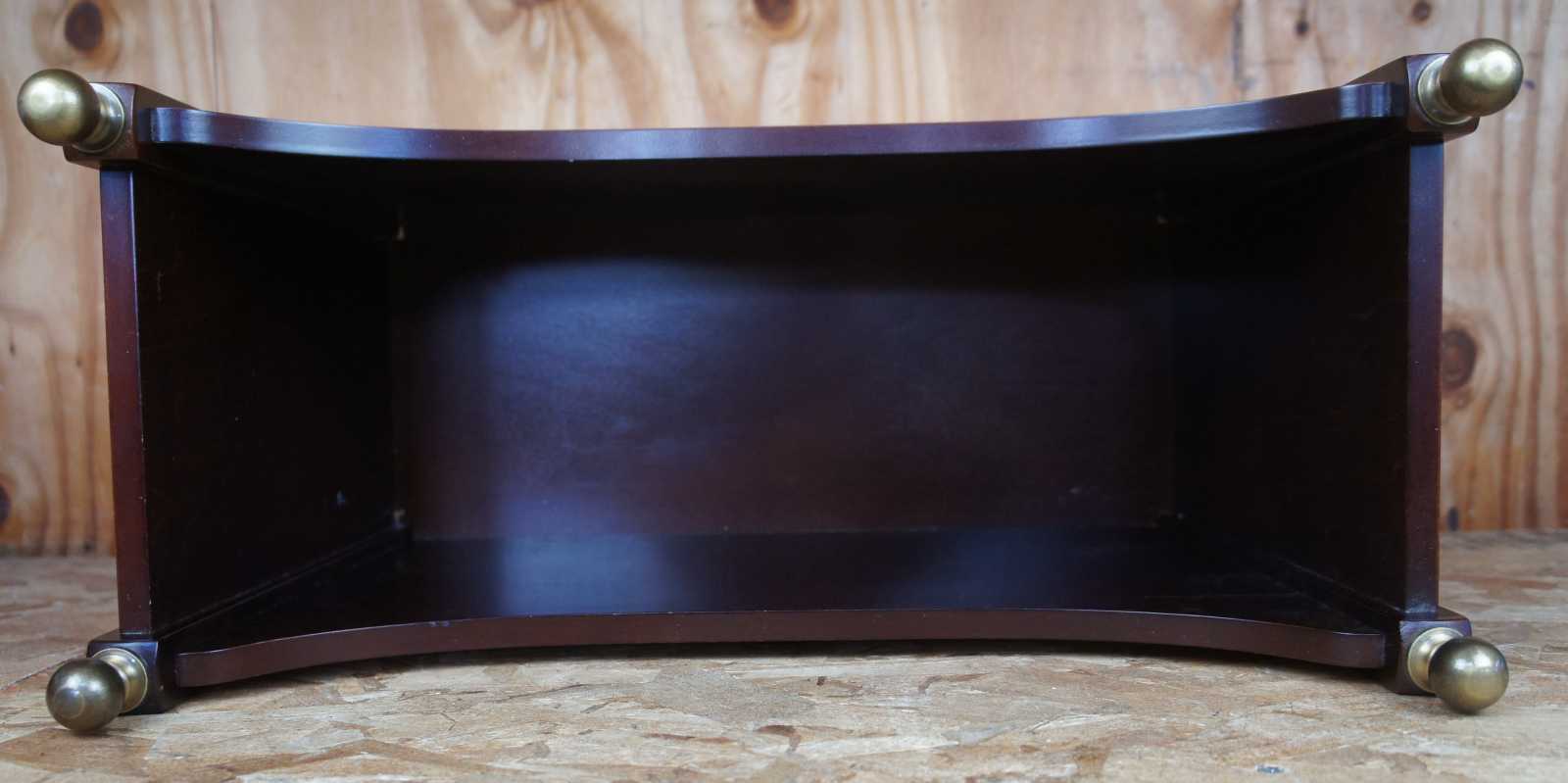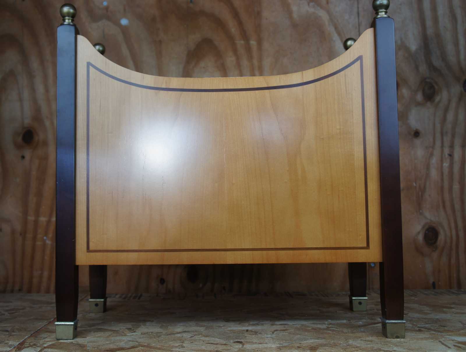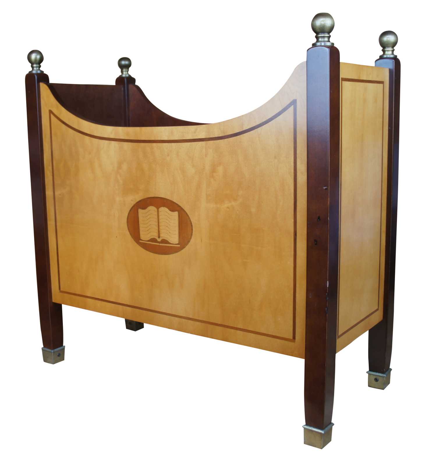 Vintage 1986 inlaid wood Canterbury magazine or book holder featuring brass accents.