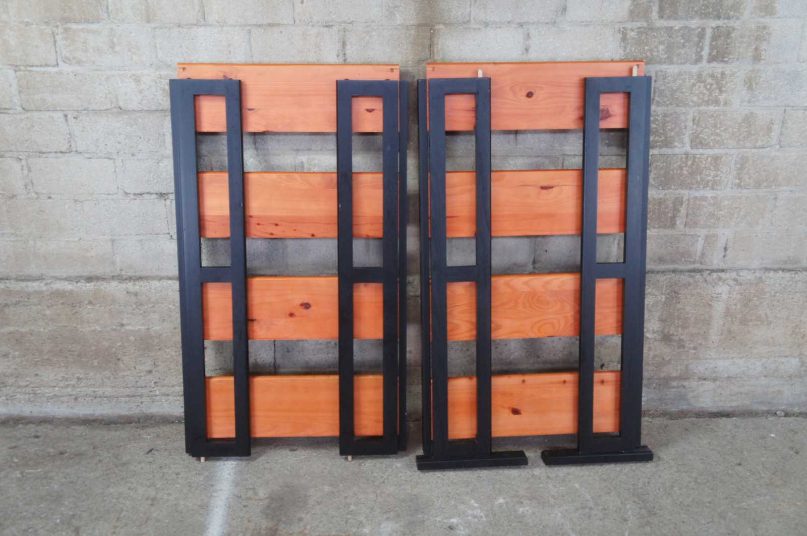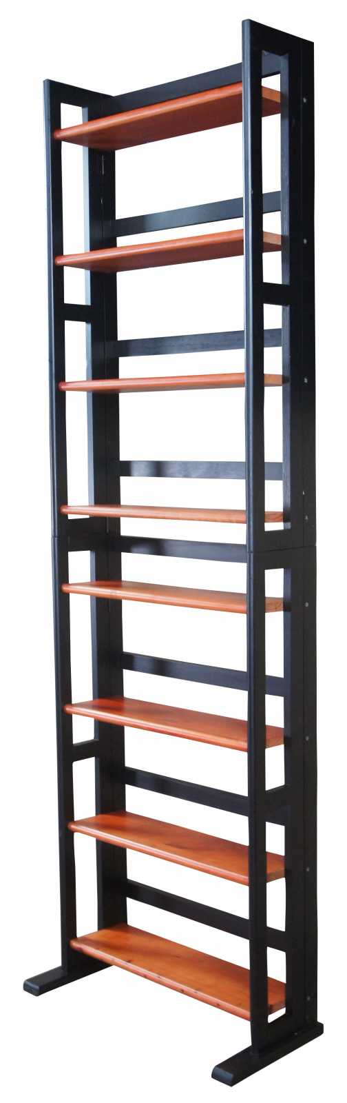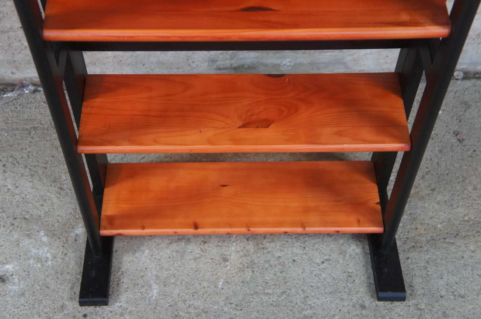 Neat pair of Chilean stacking or stand alone folding book CD or DVD shelves. Each features four shelves. Made in Chile. (2 sets available)