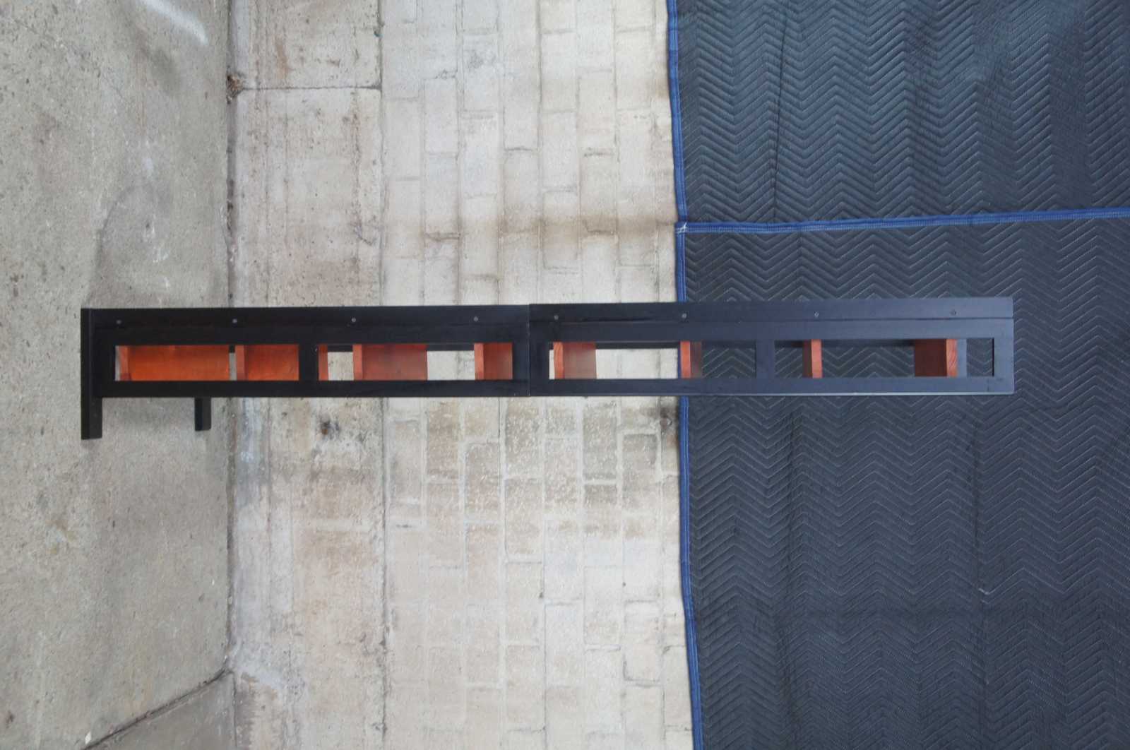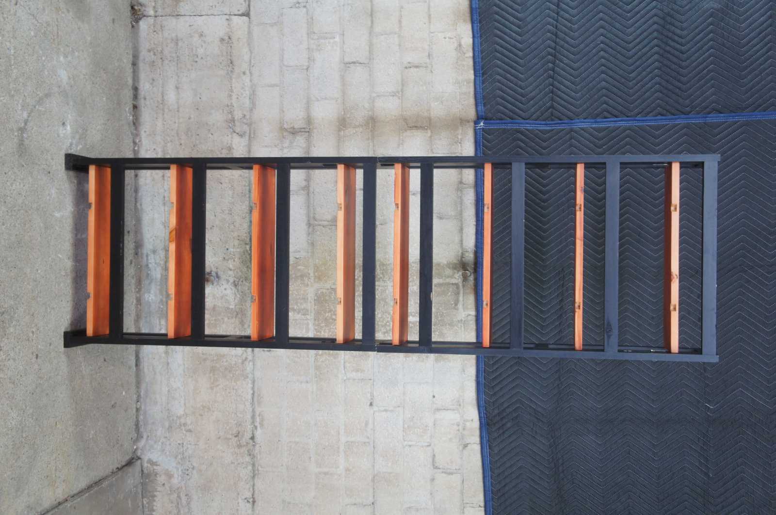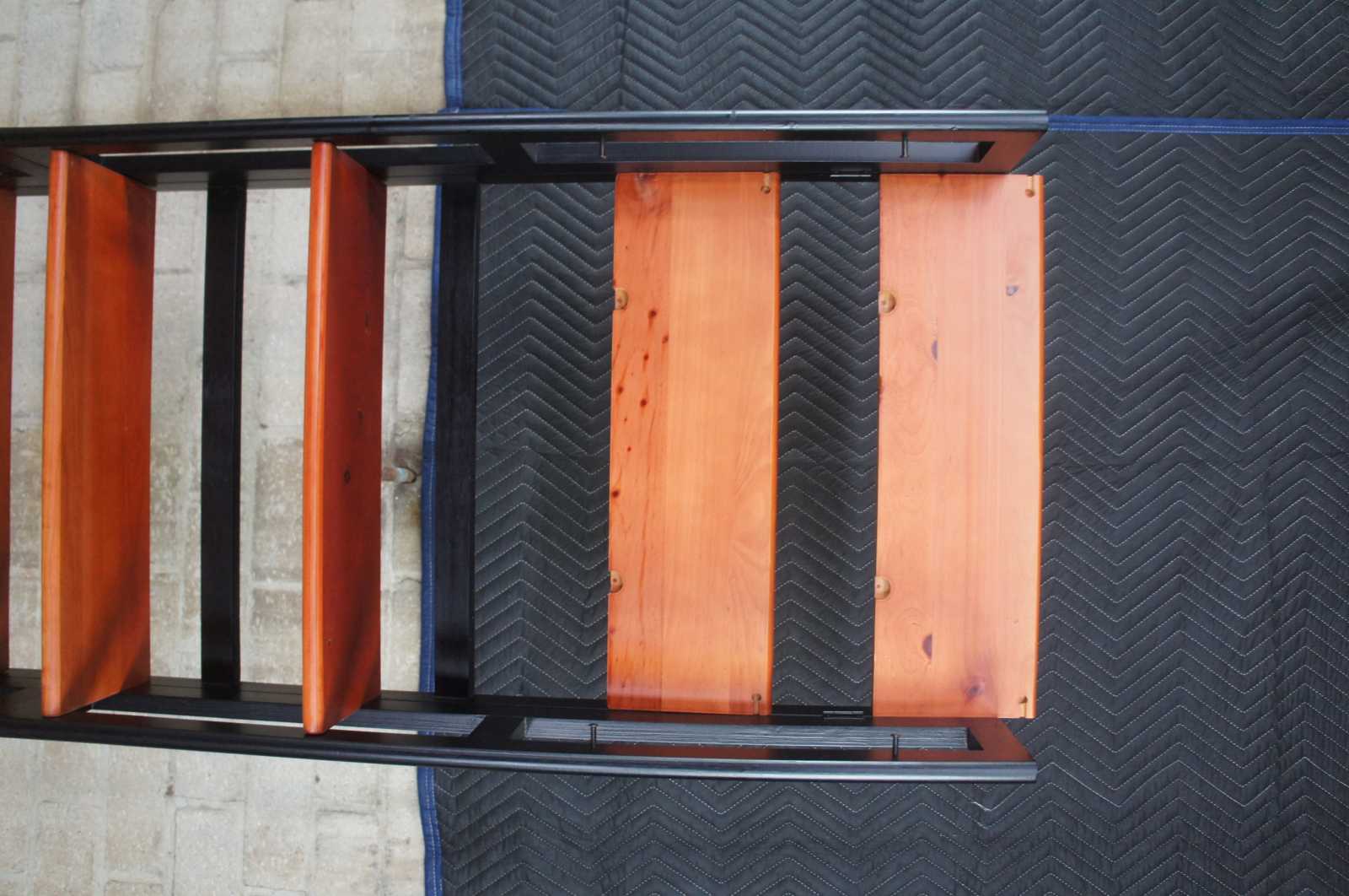 Neat pair of Chilean stacking or stand alone folding book CD or DVD shelves. Each features four shelves. Made in Chile. (2 sets available)