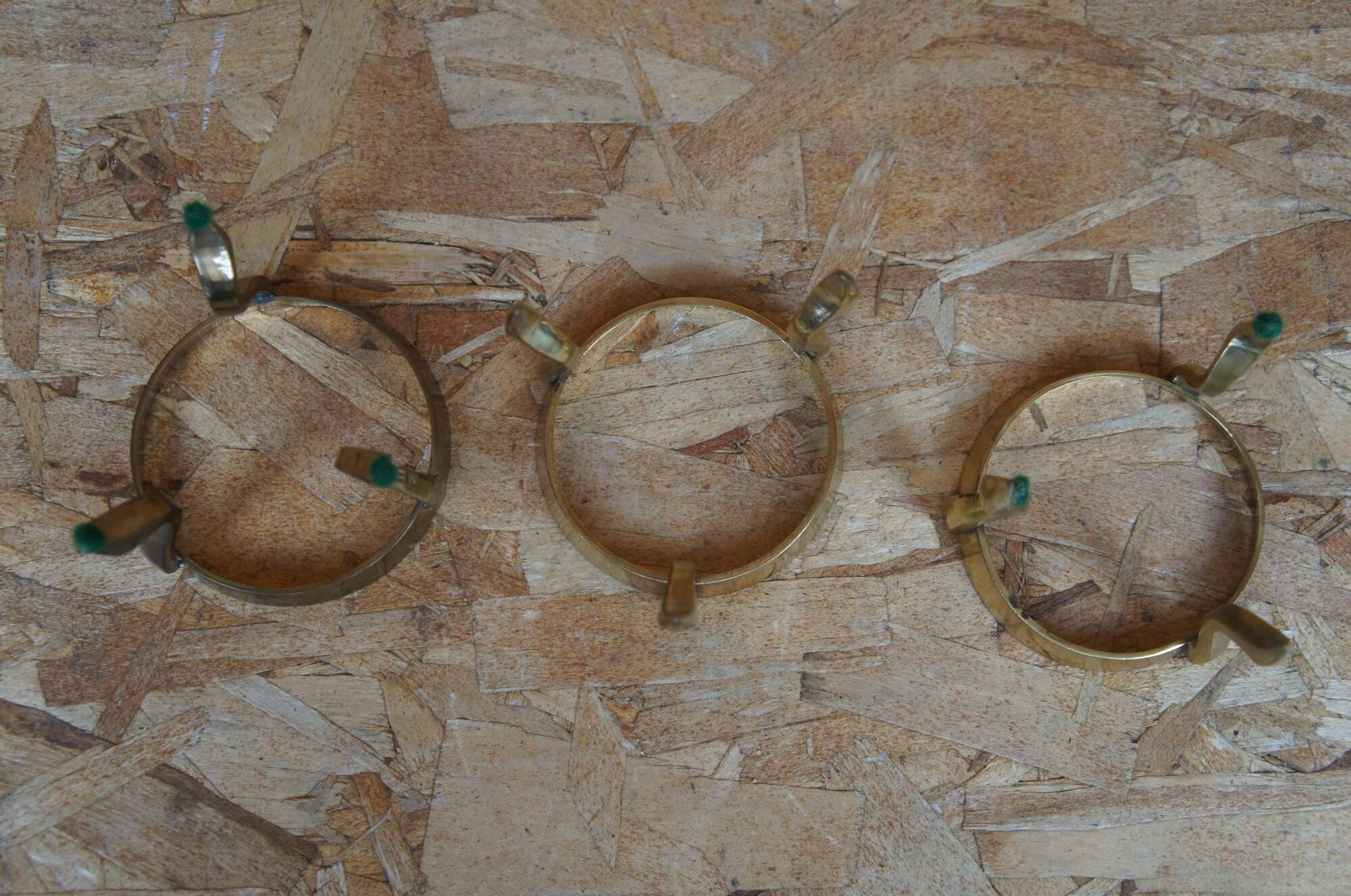 Lot of 3 intricate brass enameled decorative jewelry trinket cases on matching stands.