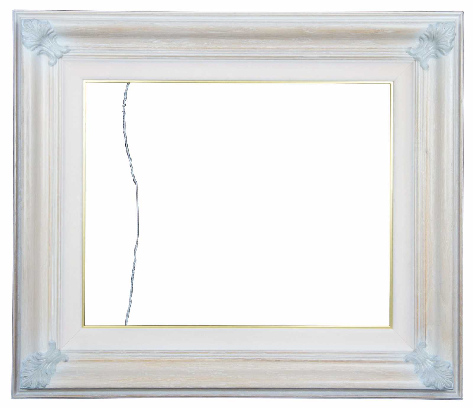 20th century white washed oak picture or mirror frame. Features fleur de lis along the corners.