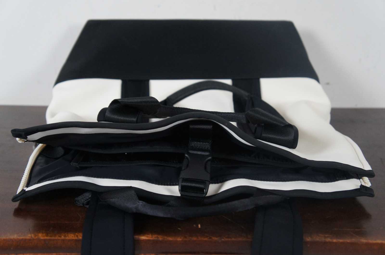 Stylish black and white multi-strap tote bag by Caraa Athleta.