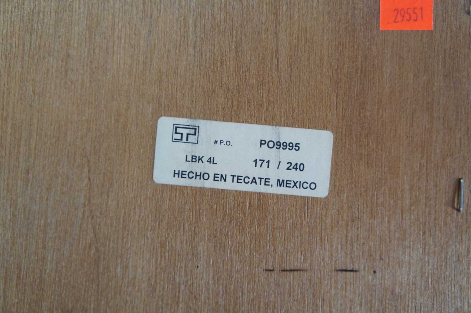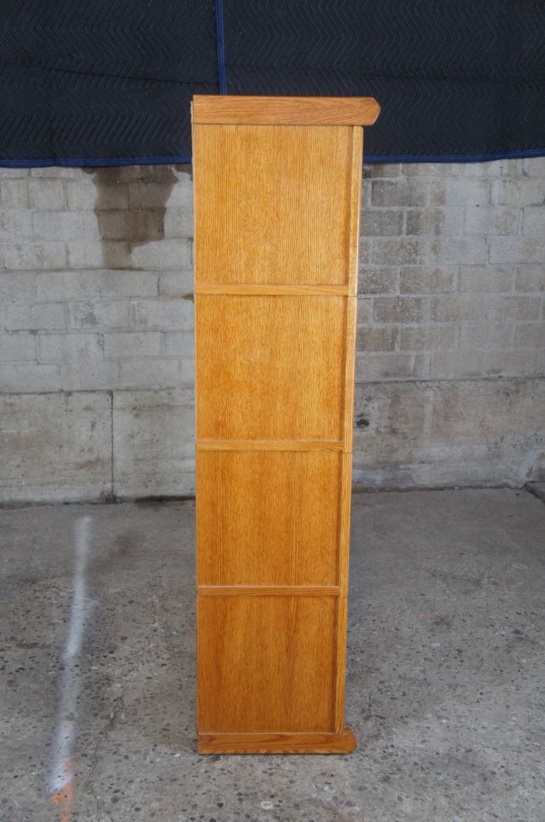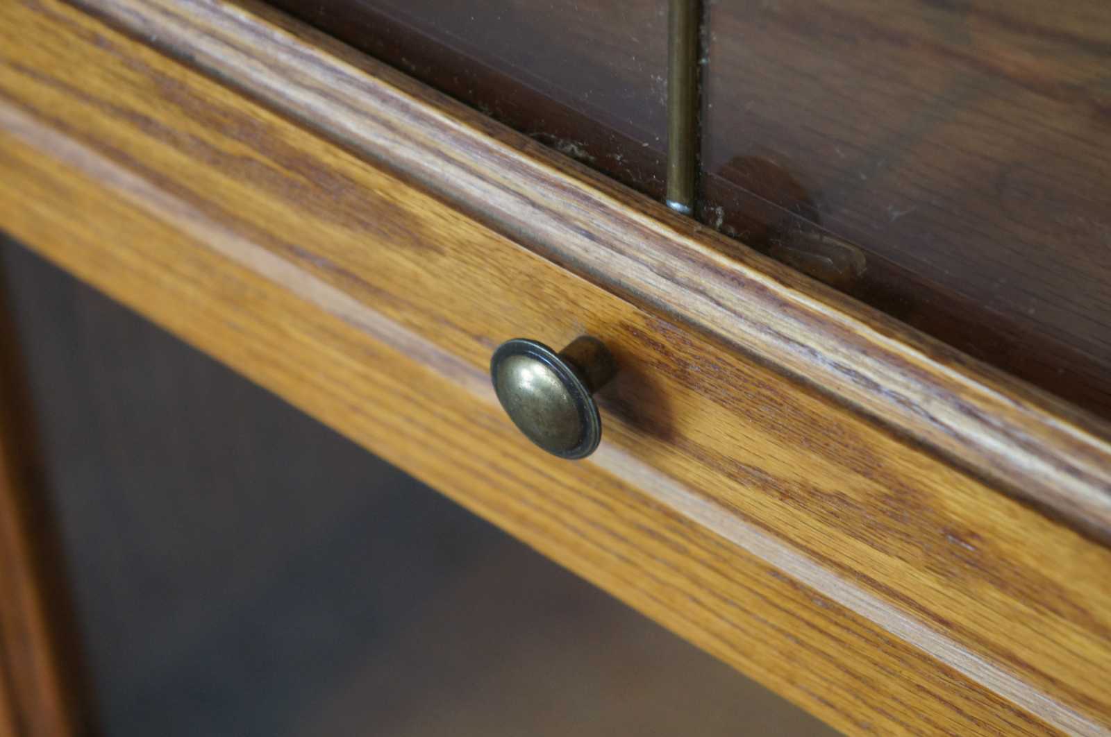 Vintage oak barrister bookcase or cabinet. Features leaded and beveled glass doors. Made in Mexico.