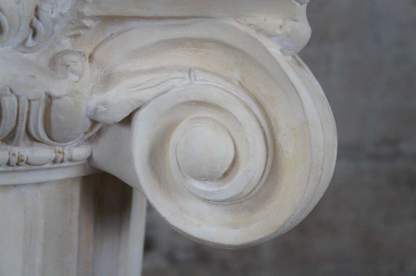 Vintage corninthian column / pedestal or table base. Made of plaster featuring a fluted column in classical Greek / Roman architectural fashion.