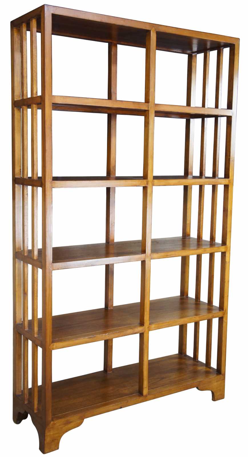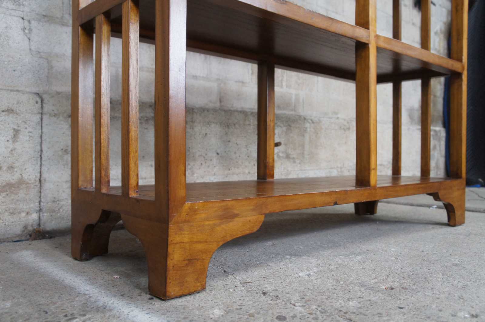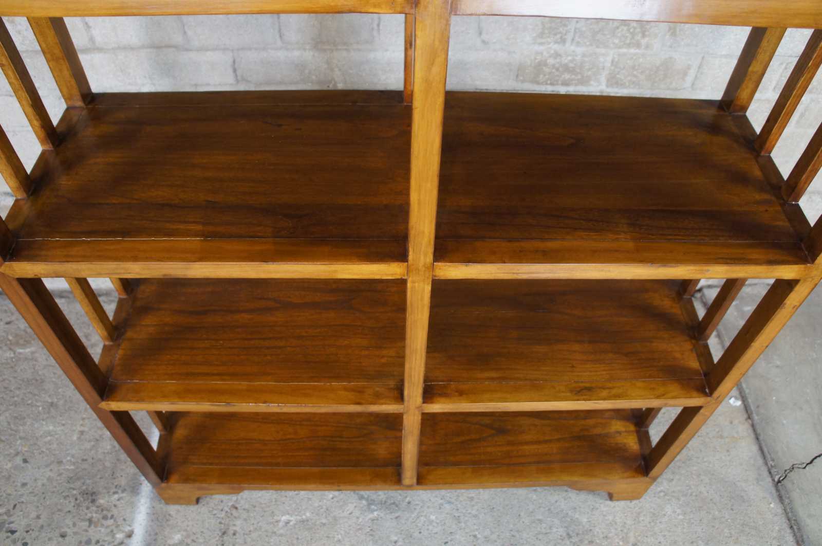 Late 20th century large scale mission style oak bookcase or etagere. Iconic open design with 5 shelves allowing for a plethora of storage.
