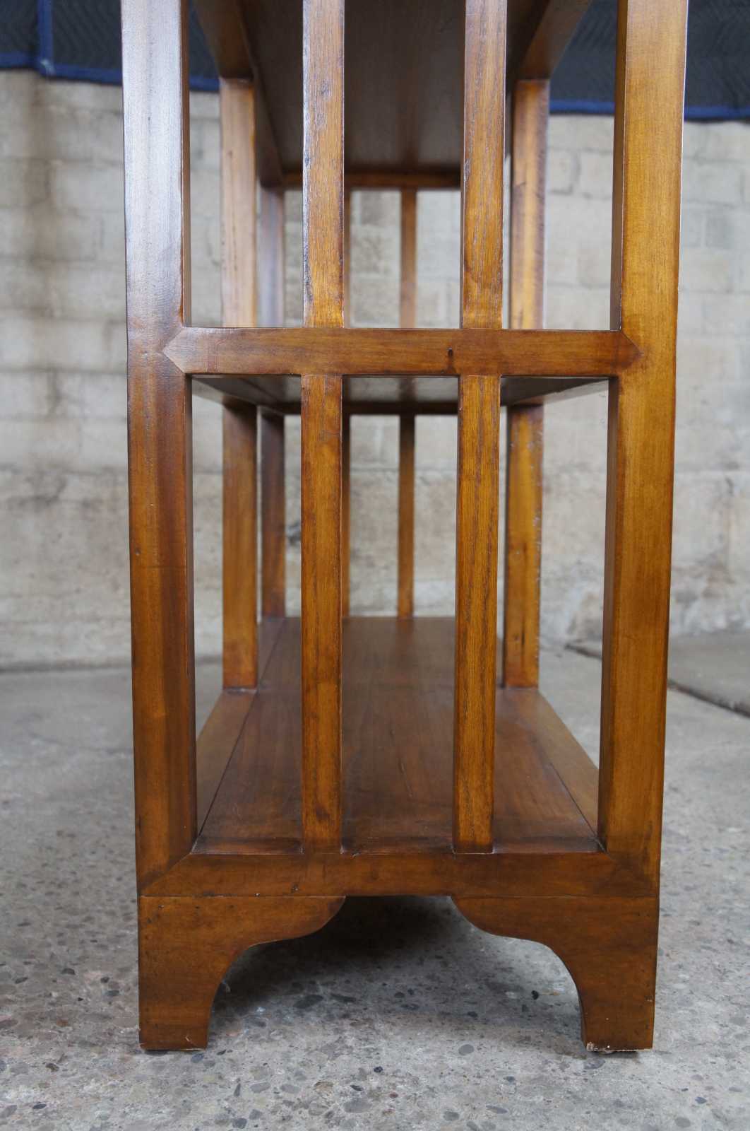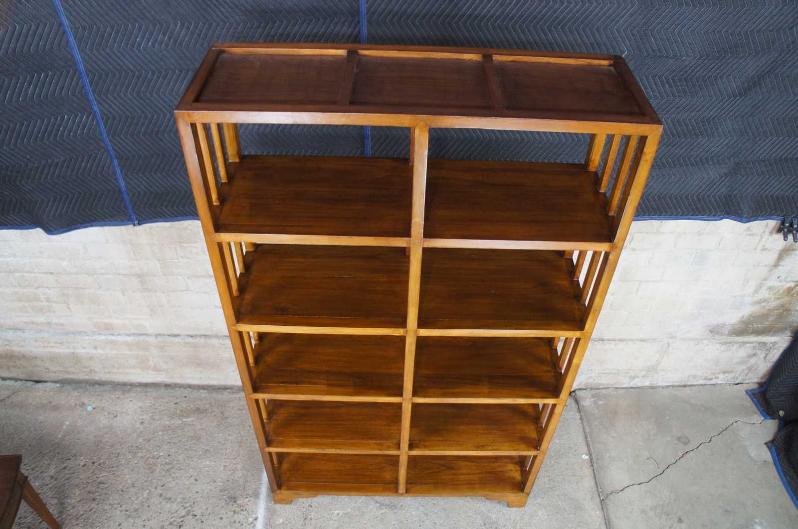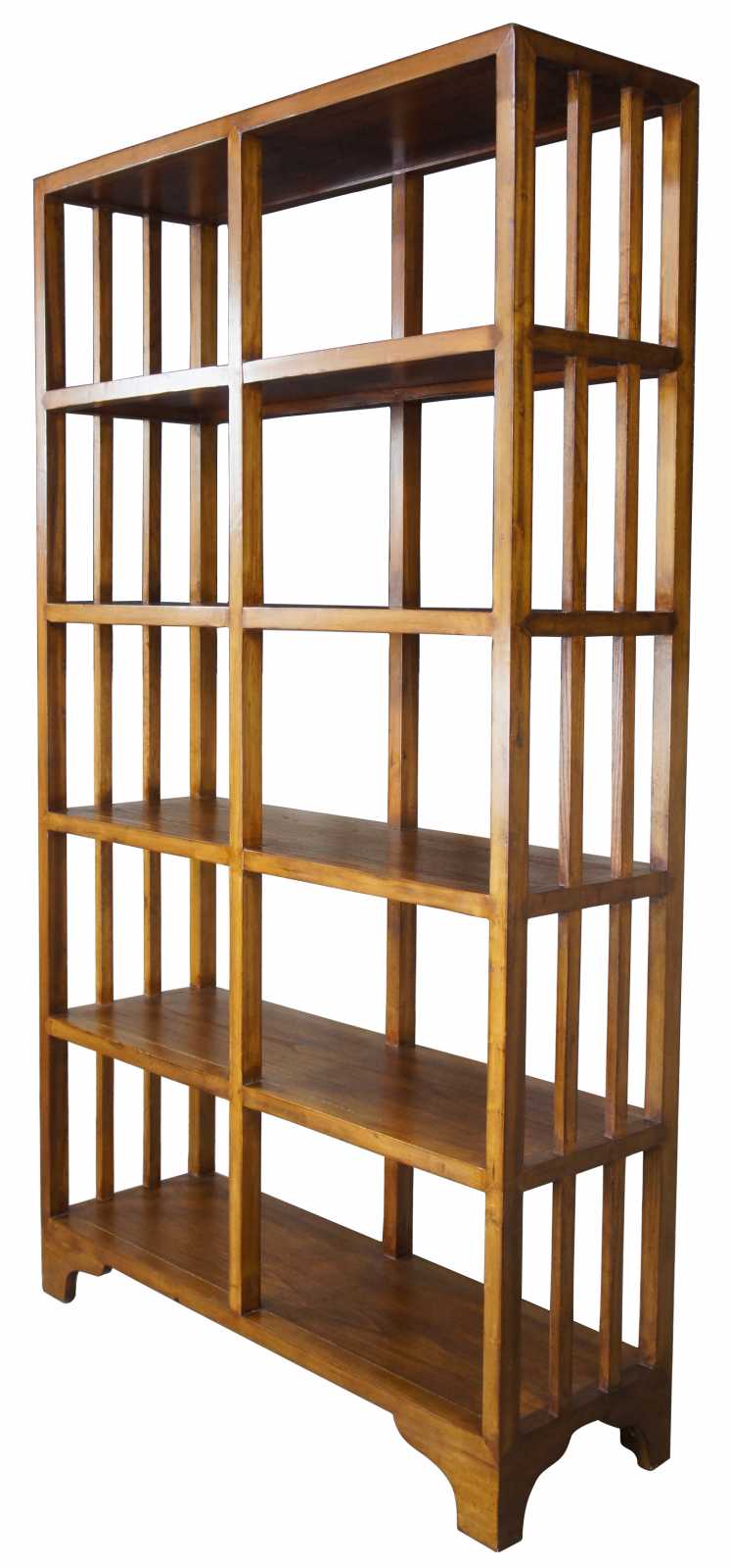 Late 20th century large scale mission style oak bookcase or etagere. Iconic open design with 5 shelves allowing for a plethora of storage.