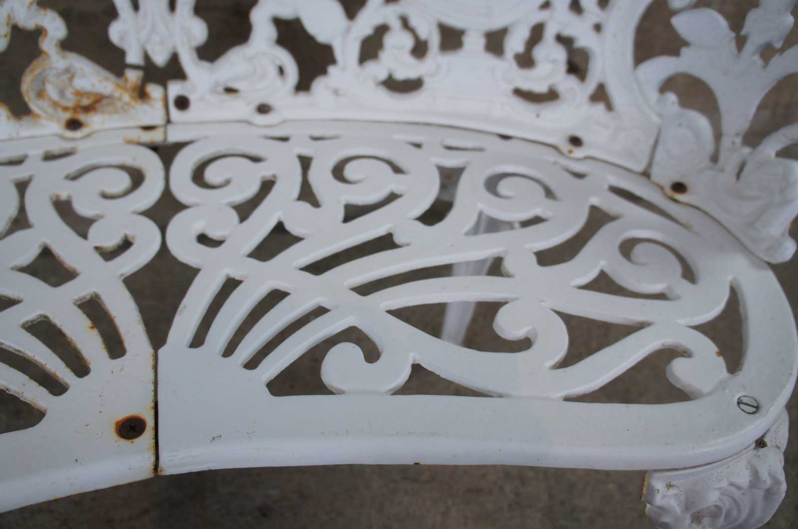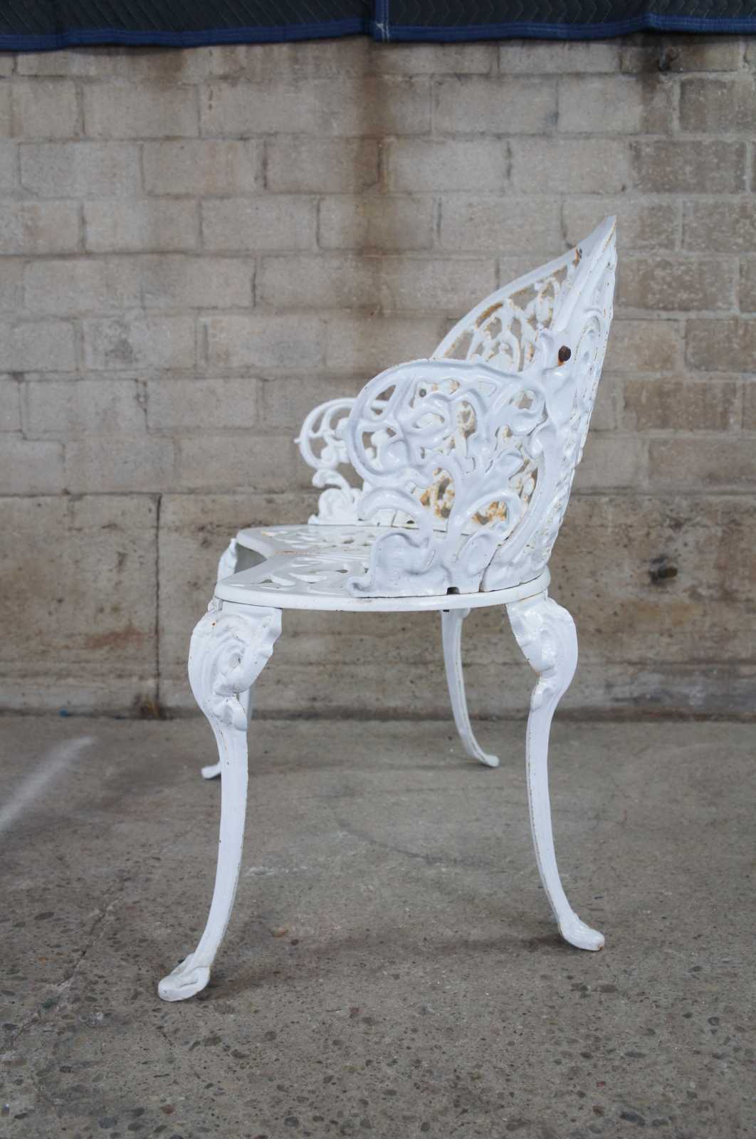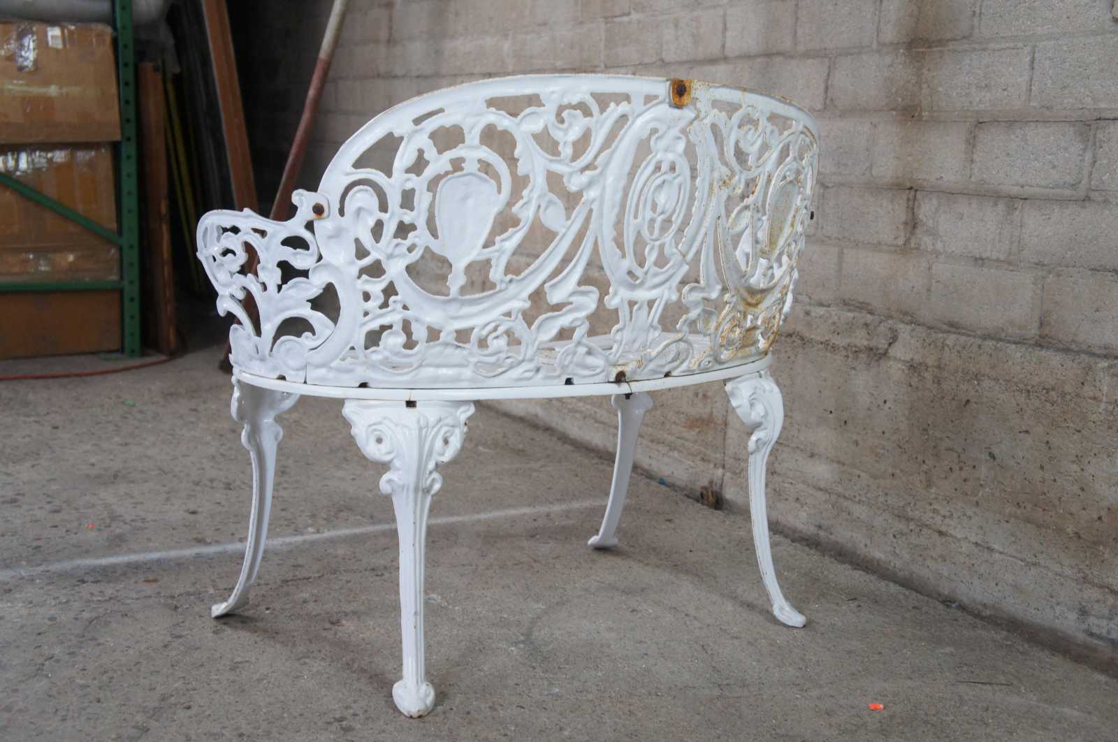 Antique French cast iron patio or garden bench. Made of cast iron featuring an ornate design with crest and scrolled seat