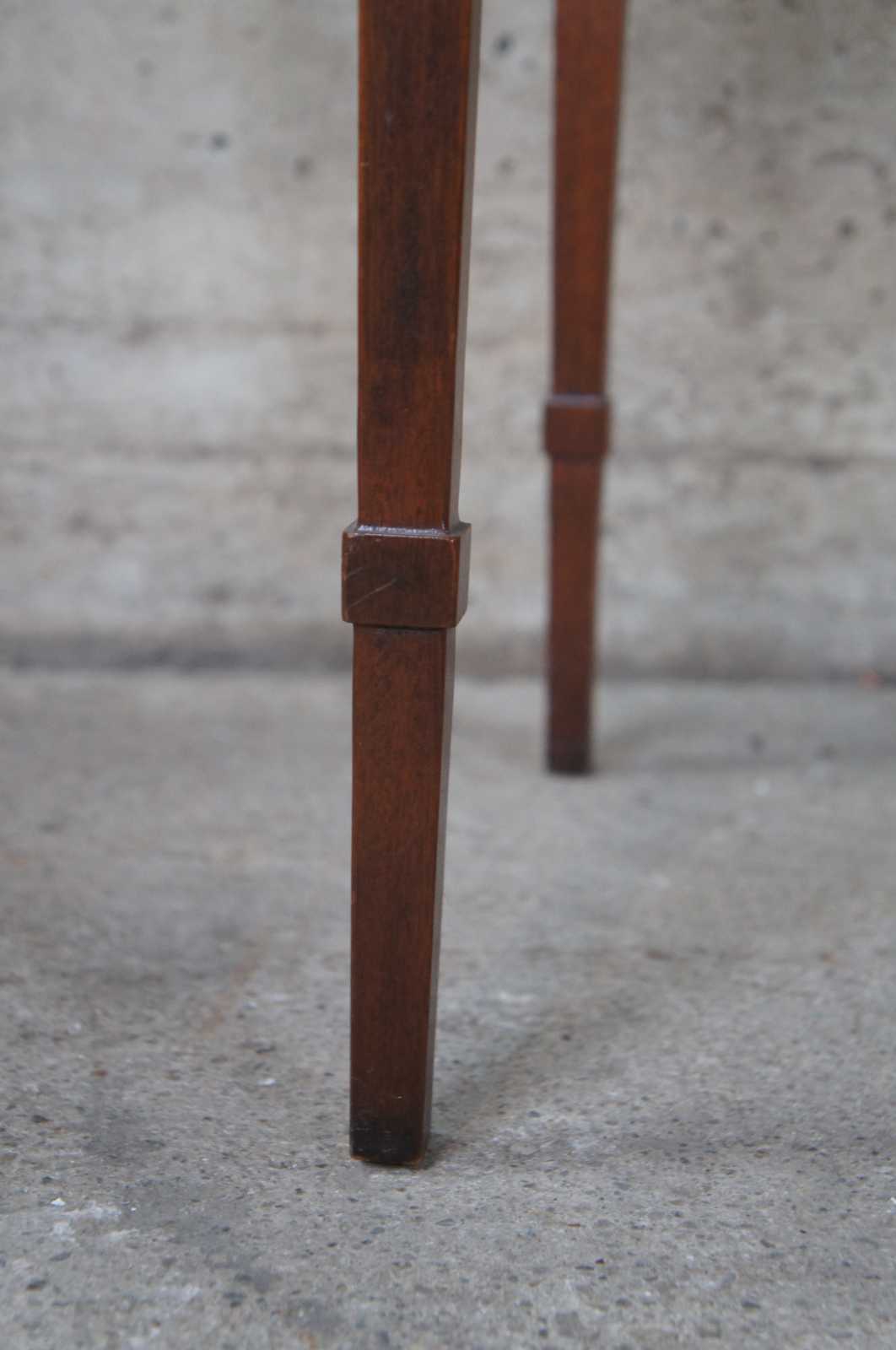 Zangerle & Peterson sheraton style side table. Features a rectangular form with bowfront sides over square tapered legs. Marked along underside.