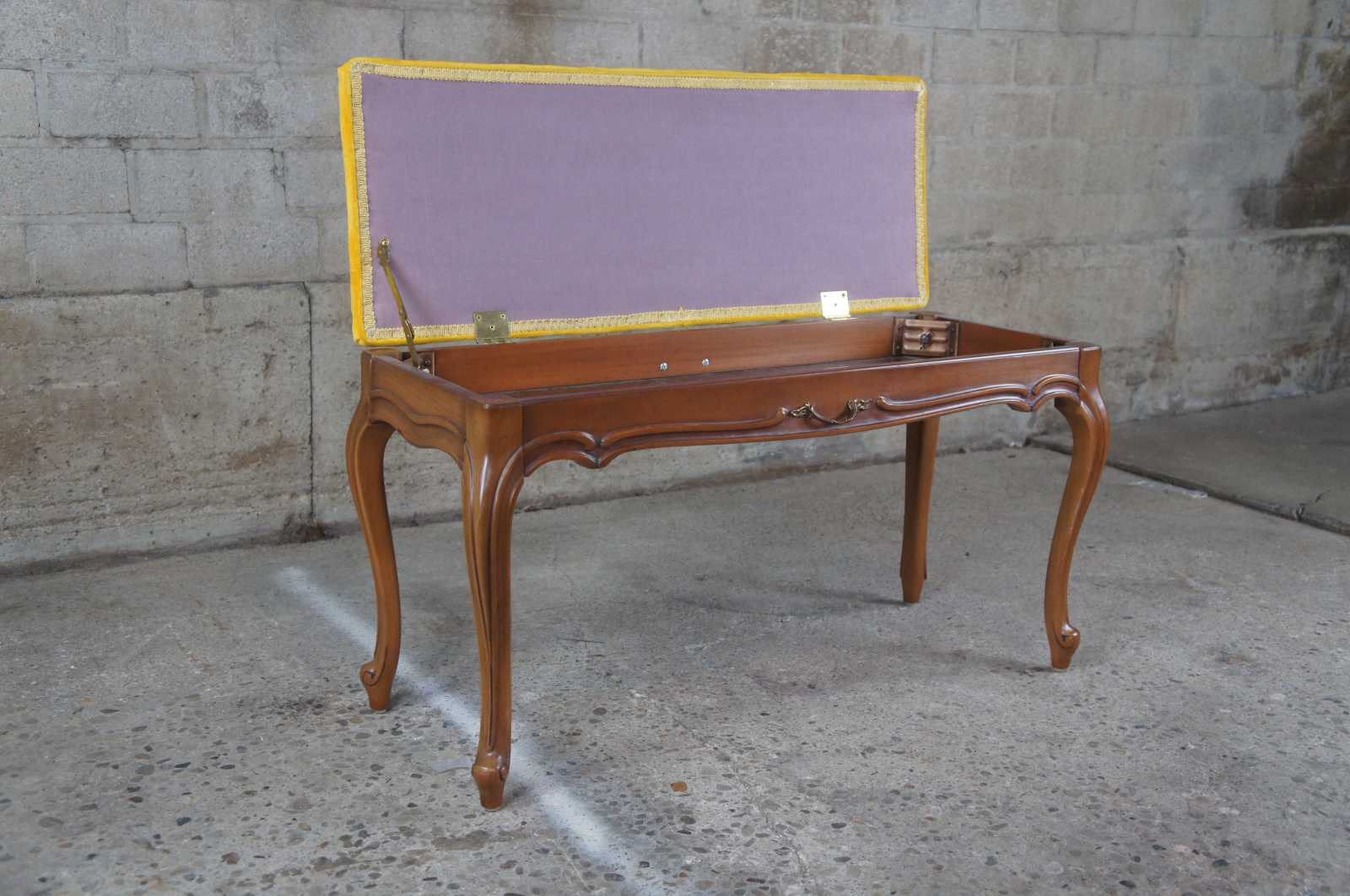 Vintage French Country Walnut Piano Storage Bench Foyer Window Tufted Seat 35"
