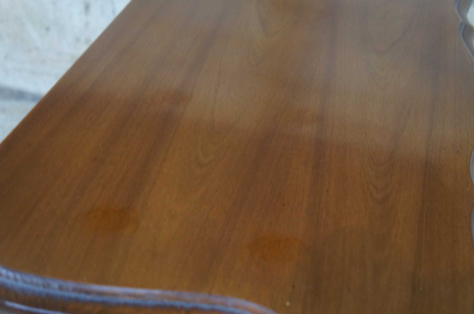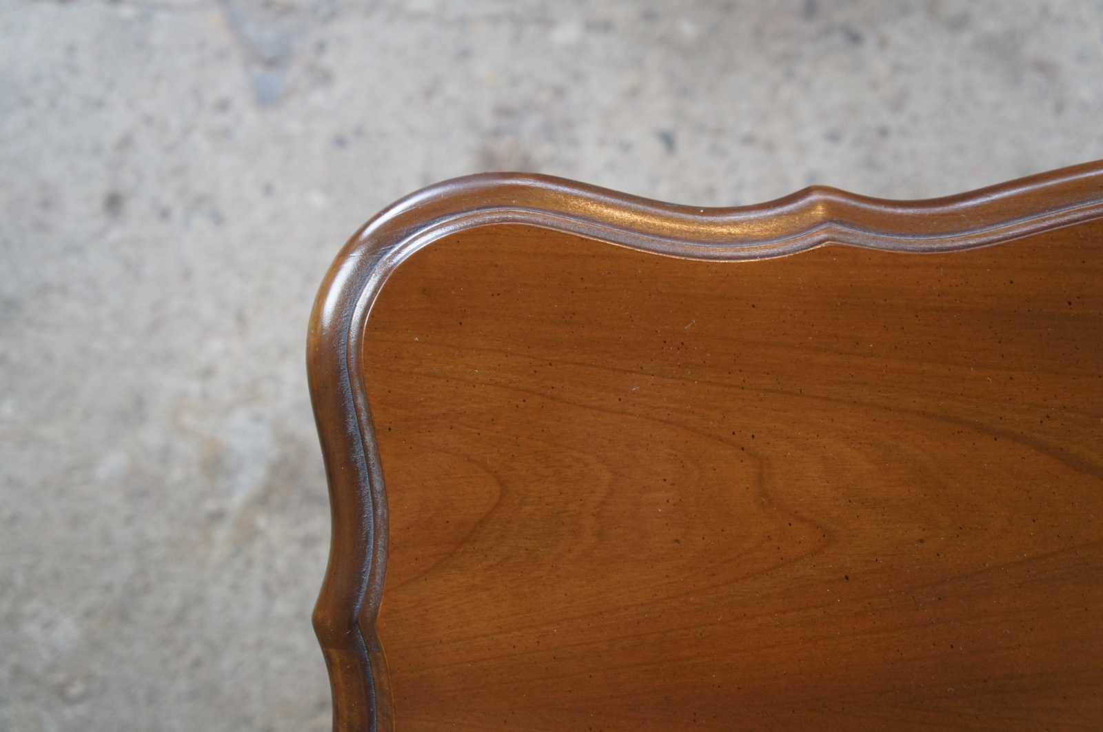 Vintage nightstand or dresser by Kent Coffey. From the Marqee French collection, featuring French Provincial styling with scalloped / serpentine top over two drawers and scrolled cabriole feet. 300-310