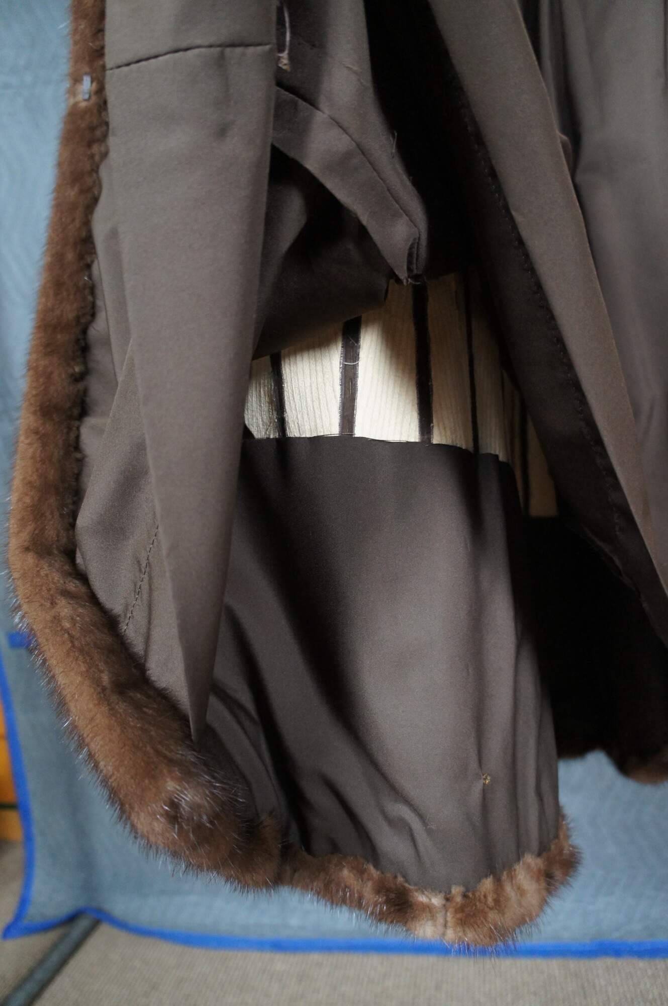 Vintage mid to late 20th century womens, full length, medium brown mink fur coat featuring swivel hooks and loop closure all the way down the front, two side pockets, and brown lining. Includes Madison’s garment bag.