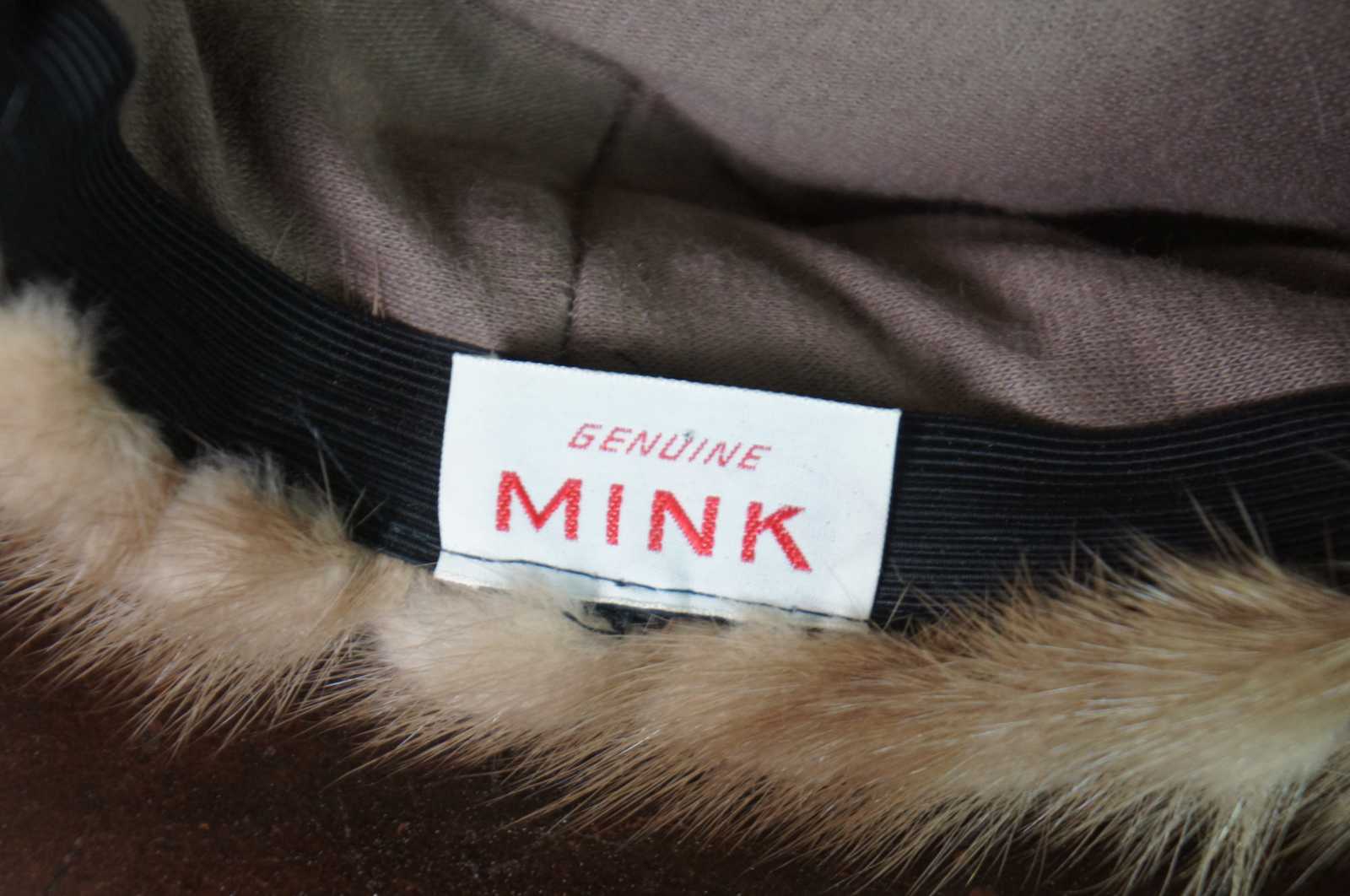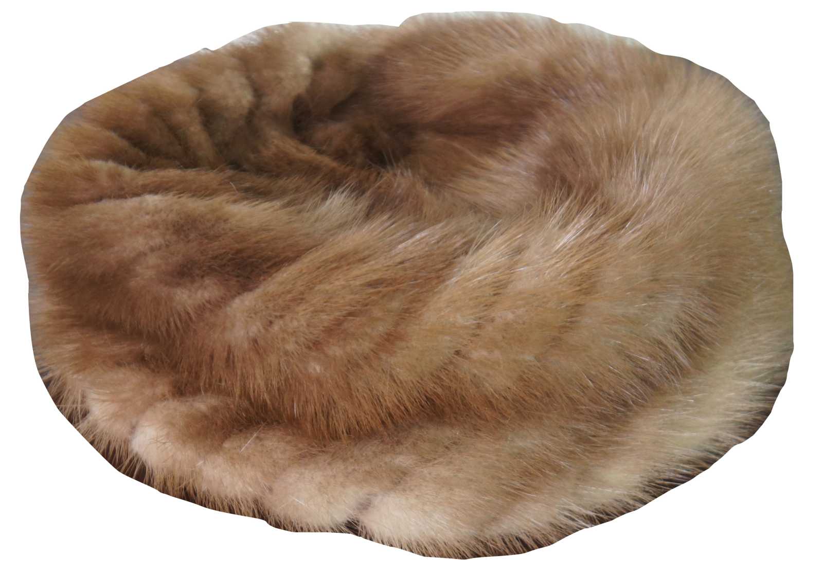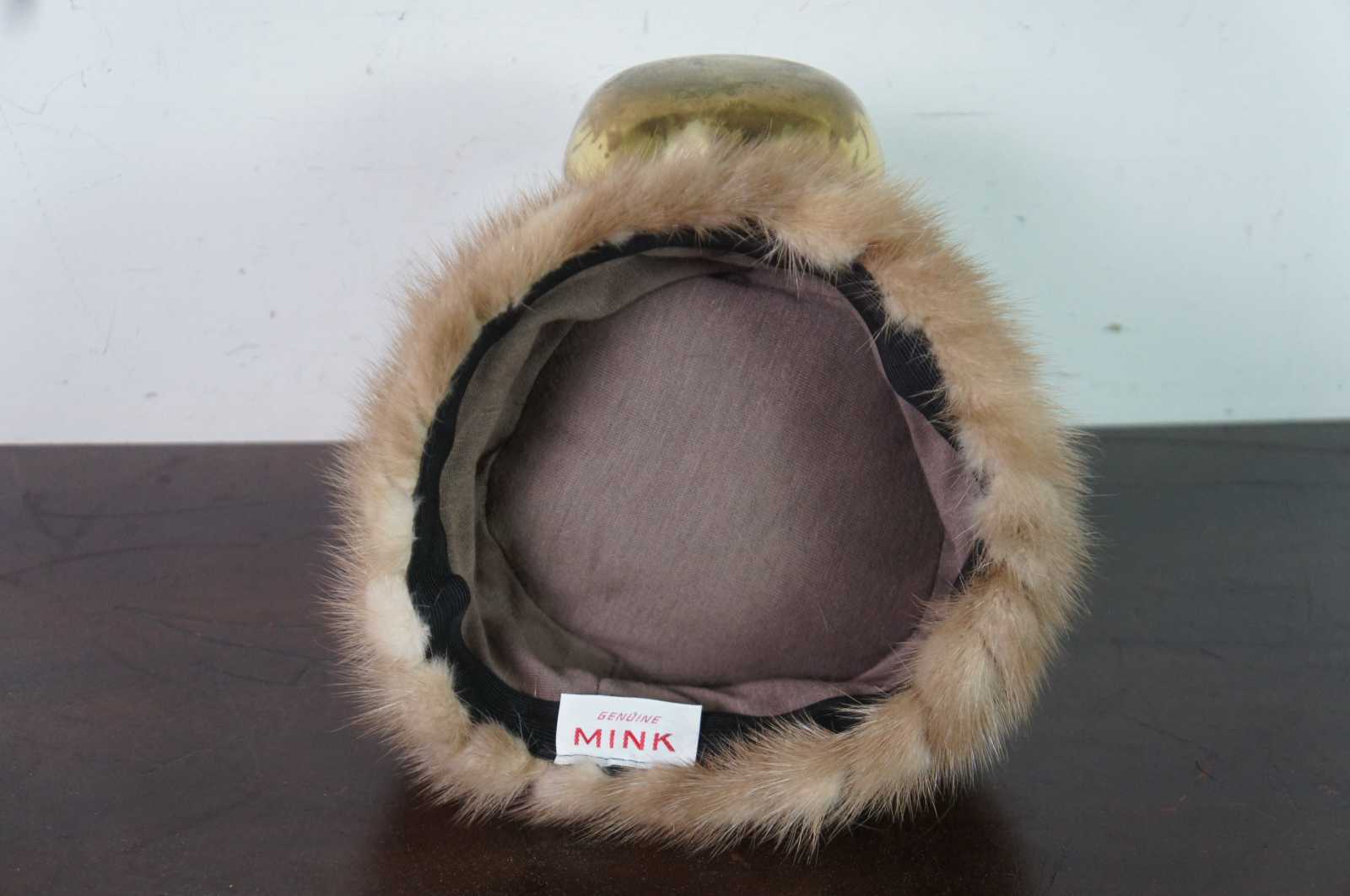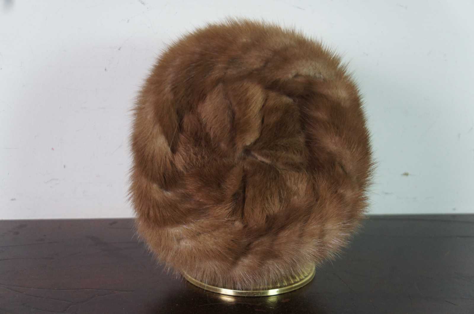 Mid century light brown pillbox or cloche style fur hat, made of genuine mink with an elastic stretcher on the inside.