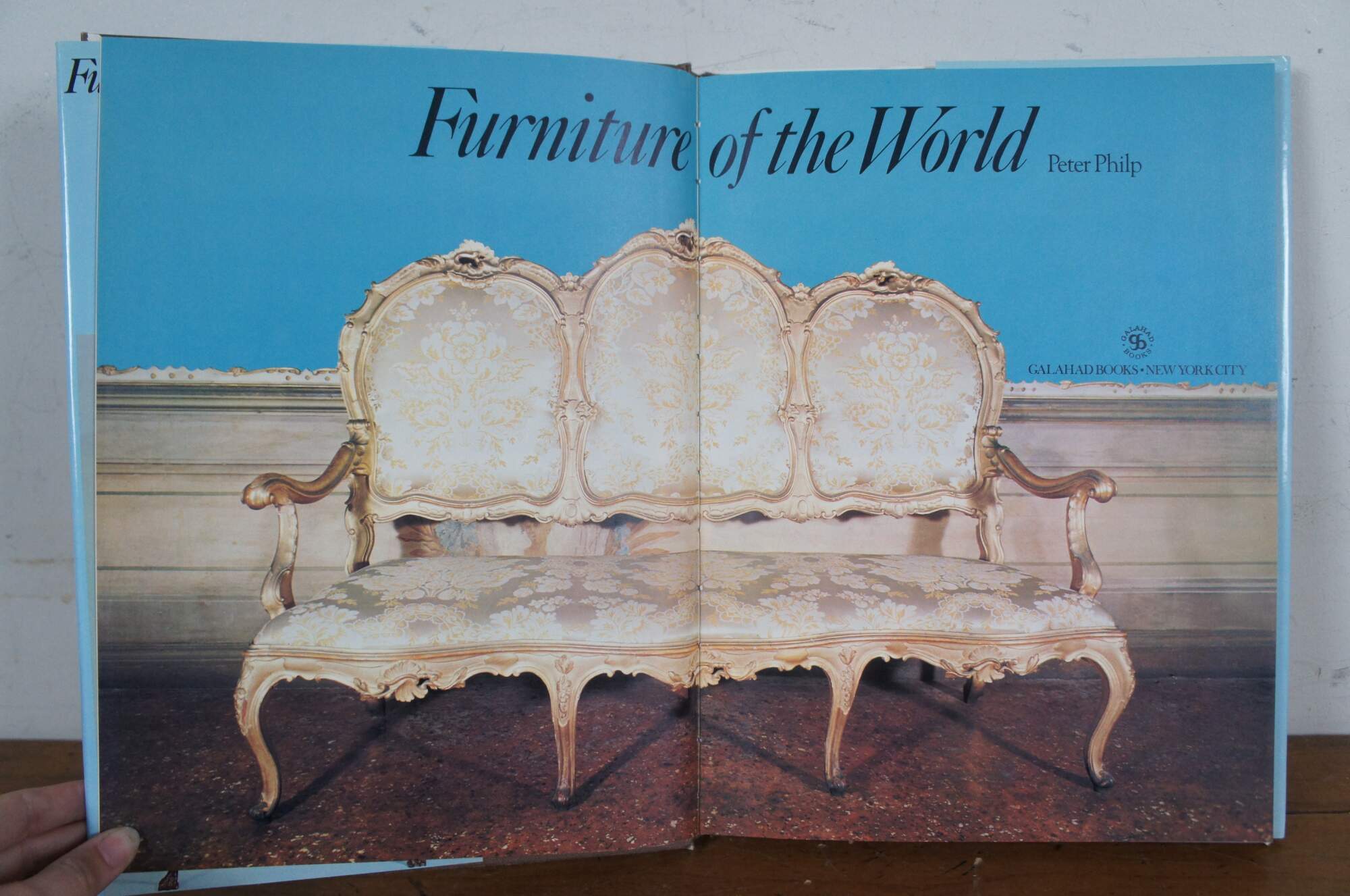 Furniture of the World" by Peter Philip - First published by Galahad Books, USA, 1974 - ISBN: 0-7064-0357-6 - Copyright 1974 by Octopus Books Ltd - Produced by Mandarin Publishers Ltd - Printed in Hong Kong. Hardback / hard bound brown fabric cover with dust jacket.
